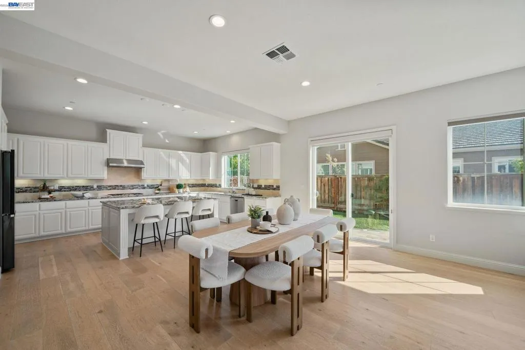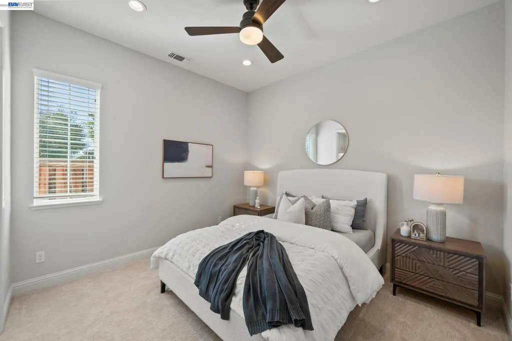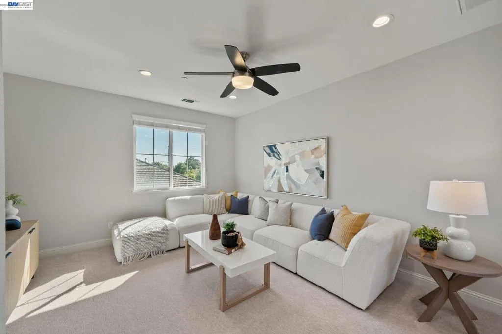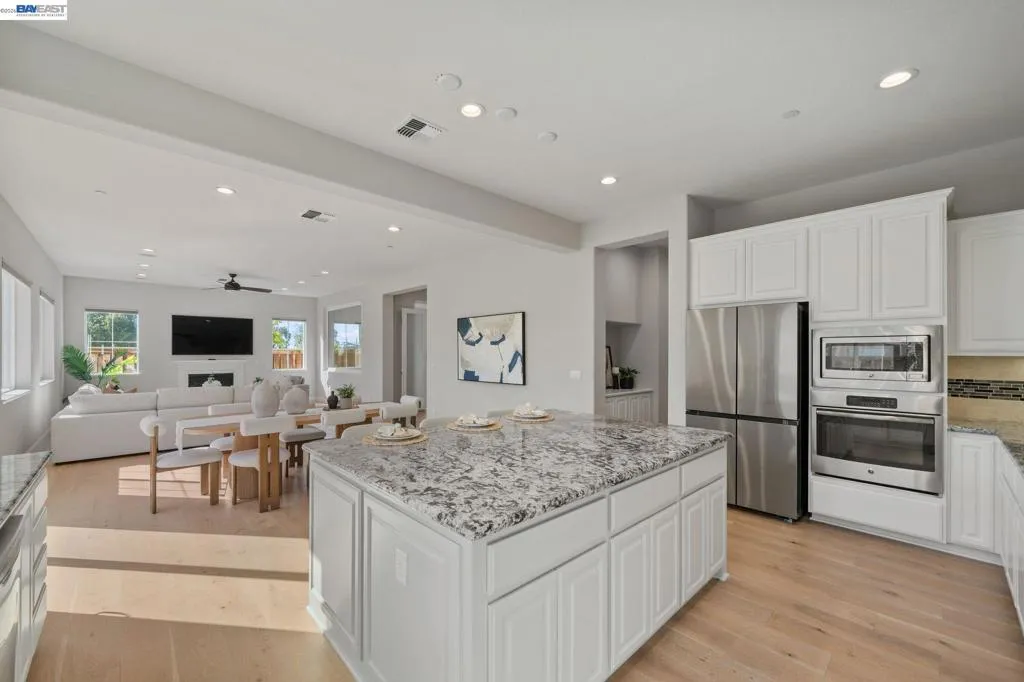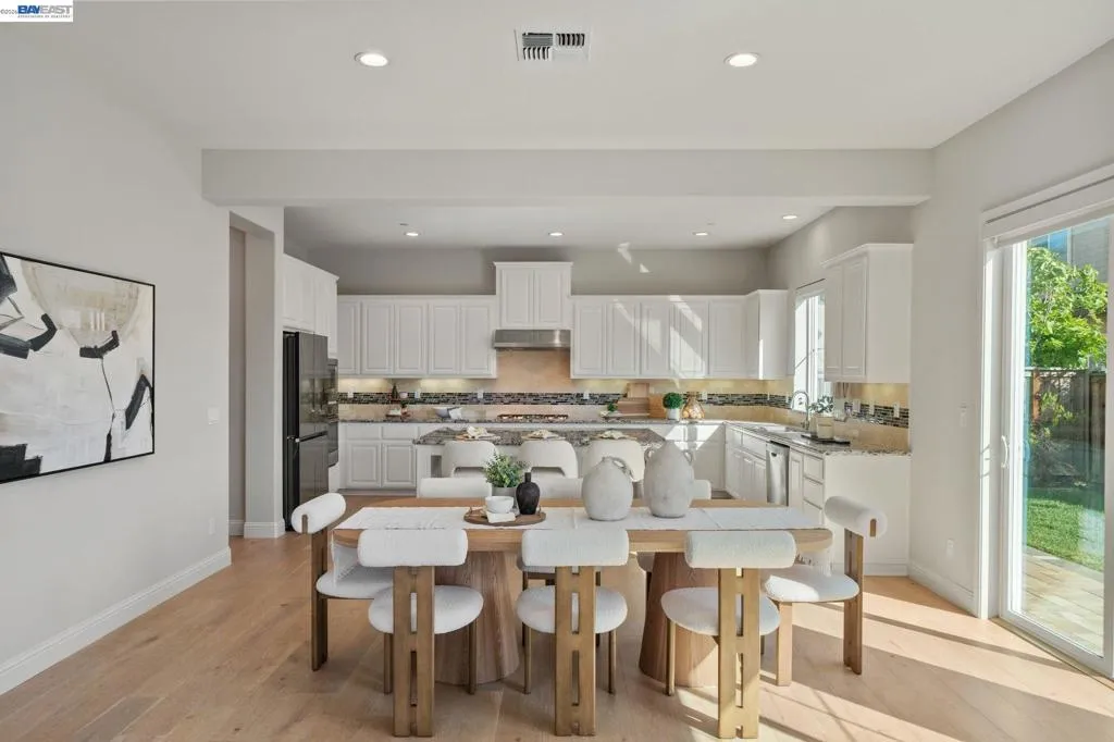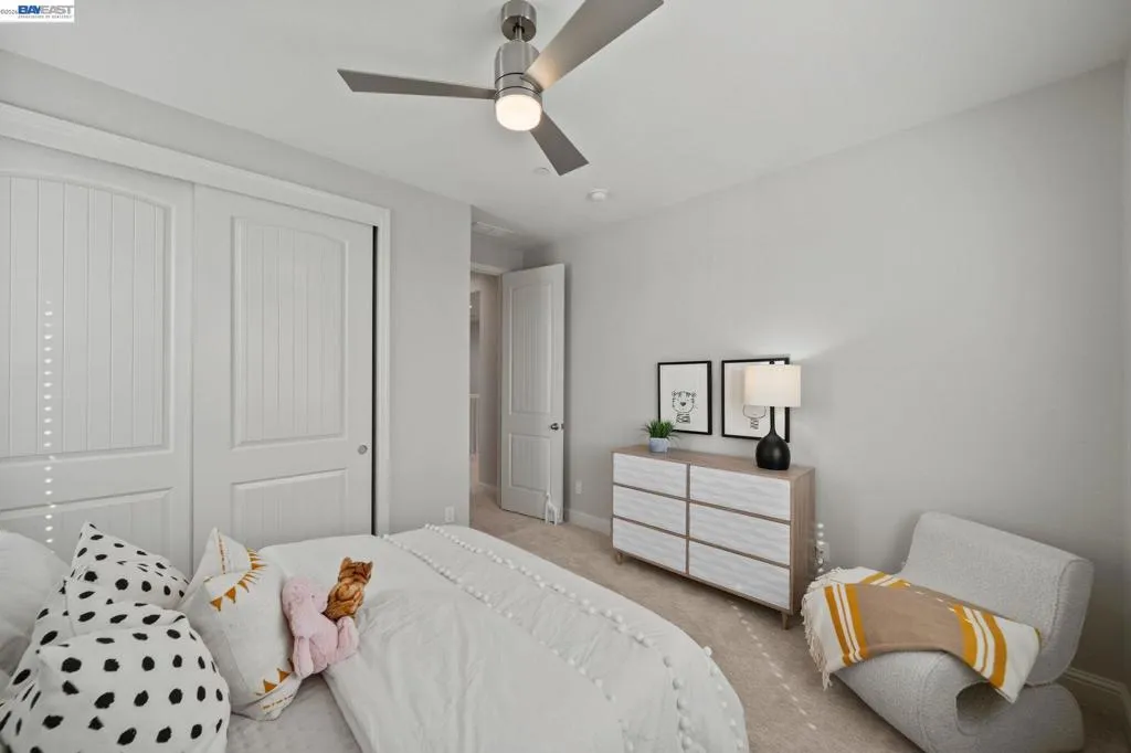 Beautifully designed DR Horton home in Patterson Ranch, built in 2016, offering 4 bedrooms, 4.5 baths, and approximately 3,402 sq ft of thoughtfully planned living space on a desirable corner lot. A generously sized downstairs suite provides excellent flexibility for guests, extended family, or multigenerational living. Fresh interior paint and new carpet create a crisp, move-in-ready feel throughout. The gourmet kitchen is appointed with granite slab countertops, a large center island, stainless steel appliances, and refined cabinetry that elevates the space with timeless style. The former formal dining room has been converted into a private office with a Murphy bed, offering ideal flexibility for working from home or accommodating overnight guests.The spacious main living area includes hardwood floors, surround sound, and a cozy fireplace. Upstairs, an oversized loft provides excellent bonus space for entertaining, along with a separate study area. The generous primary suite offers a soaking tub and separate stall shower. Additional highlights include solar power, 2 Tesla Powerwalls, an EV charger, a 3-car garage, and a beautifully finished backyard with decorative retaining walls and a verdant lawn. Located in Patterson Ranch’s urban farm-inspired community near trails, shopping, Facebook, Coyote Hills, BART, 880, and the Dumbarton Bridge.