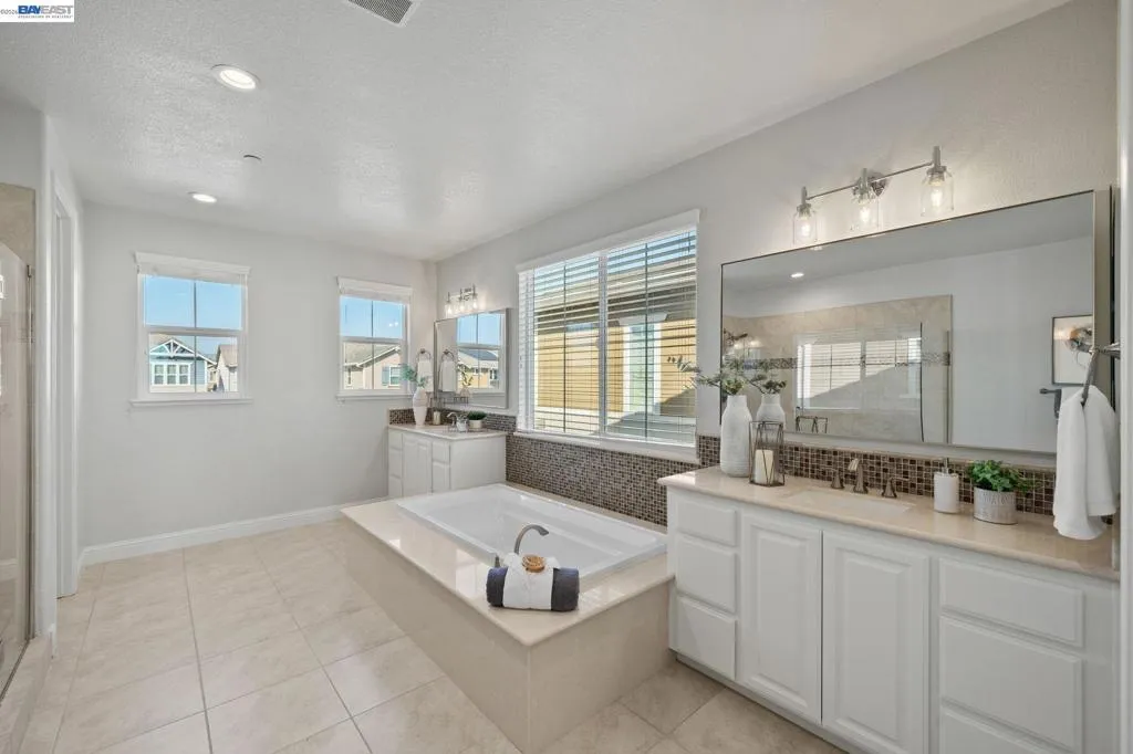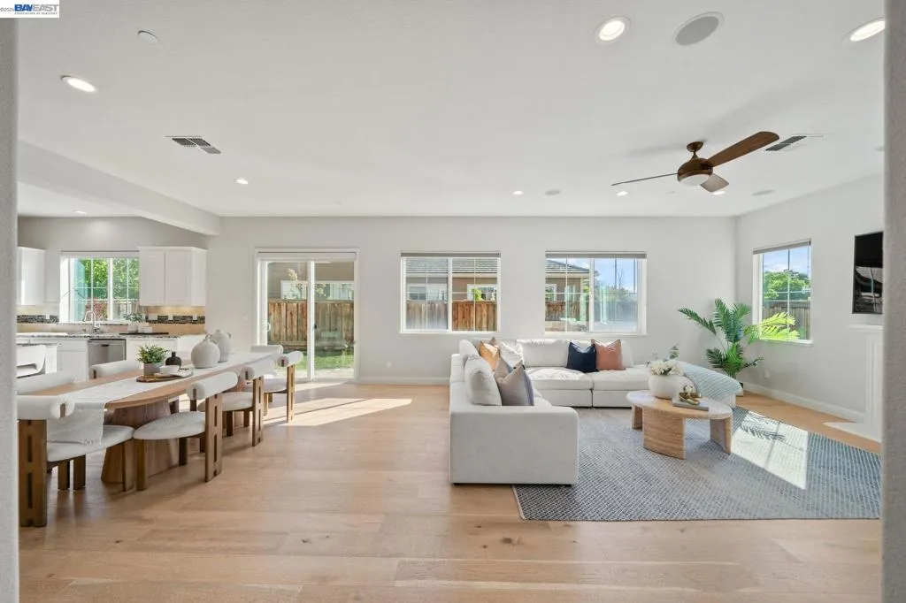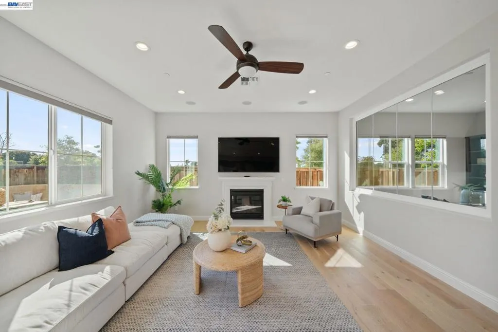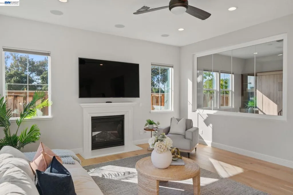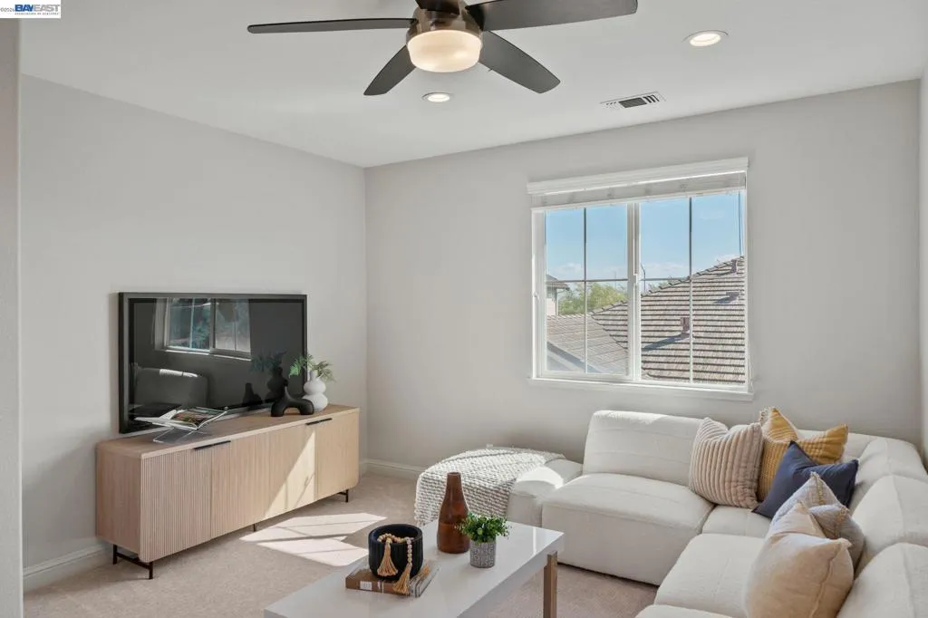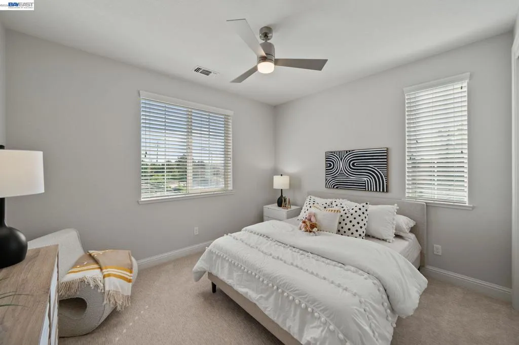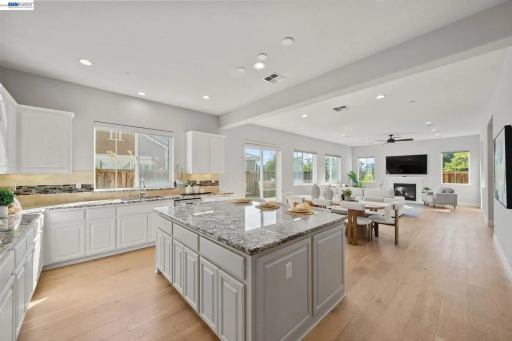 Beautifully designed DR Horton home in Patterson Ranch, built in 2016, offering 4 bedrooms, 4.5 baths, and approximately 3,402 sq ft of thoughtfully planned living space on a desirable corner lot. A generously sized downstairs suite provides excellent flexibility for guests, extended family, or multigenerational living. Fresh interior paint and new carpet create a crisp, move-in-ready feel throughout. The gourmet kitchen is appointed with granite slab countertops, a large center island, stainless steel appliances, and refined cabinetry that elevates the space with timeless style. The former formal dining room has been converted into a private office with a Murphy bed, offering ideal flexibility for working from home or accommodating overnight guests.The spacious main living area includes hardwood floors, surround sound, and a cozy fireplace. Upstairs, an oversized loft provides excellent bonus space for entertaining, along with a separate study area. The generous primary suite offers a soaking tub and separate stall shower. Additional highlights include solar power, 2 Tesla Powerwalls, an EV charger, a 3-car garage, and a beautifully finished backyard with decorative retaining walls and a verdant lawn. Located in Patterson Ranch’s urban farm-inspired community near trails, shopping, Facebook, Coyote Hills, BART, 880, and the Dumbarton Bridge.
