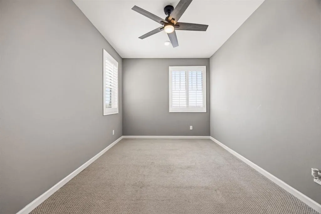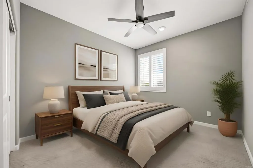 One or more photo(s) have been virtually staged to show the property's potential. Original photos are included in the gallery for comparison. Built in 2023, this beautifully upgraded 5-bedroom, 3-bath home offers modern living with breathtaking mountain views and paid-off solar for added energy savings. Featuring a highly desirable first-floor bedroom and full bathroom, this floor plan is ideal for guests, multigenerational living, or a home office. Interior upgrades include plantation shutters throughout, crown molding downstairs and in the spacious primary suite, a custom cedar-lined Closet World walk-in closet, and a newly upgraded oversized walk-in shower in the primary bath. The backyard is designed for both relaxation and entertaining, complete with a covered patio with two ceiling fans, low-voltage landscape lighting, 20 fruit trees with soaker irrigation, and a 10x12 shed with electrical. Unique 48 concrete steps on the backyard incline create the perfect built-in workout feature while maximizing the outdoor space. Additional features include a tankless water heater, water softener, beautifully landscaped front and back yards, and a front rose garden with its own soaker system. Conveniently located close to shopping, restaurants, and everyday amenities, this move-in-ready home offers the perfect combination of comfort, style, and convenience. A rare opportunity to own a newer construction home loaded with premium upgrades, scenic views, and an unbeatable location.