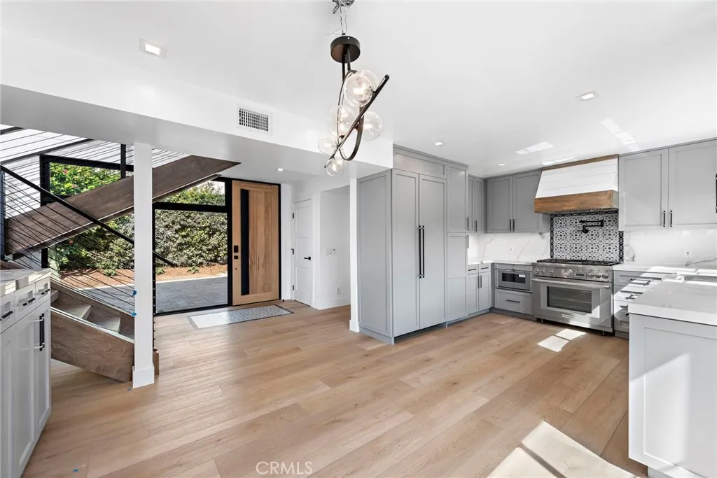 Exquisite Coastal Retreat | Fully Remodeled 3BR/3BA with Sweeping Ocean Views & Designer Finishes. Experience the essence of modern coastal luxury in this stunningly renovated 3-bedroom, 3-bathroom home, where refined design and dramatic ocean vistas come together in perfect harmony. The heart of the home is a chef-inspired kitchen, thoughtfully appointed with top-of-the-line Thermador appliances, a 100-bottle wine refrigerator, and an expansive dining area ideal for hosting unforgettable gatherings. Just steps away, the elevated living room invites you in with a cozy gas fireplace and striking La Cantina doors that seamlessly open to an impressive 400 sq ft deck—blurring the line between indoor comfort and outdoor serenity. From the deck, walk-out stairs lead to a newly landscaped backyard, offering a peaceful setting for entertaining or quiet reflection. Upstairs, the entire top floor is dedicated to a private primary suite—a true retreat boasting panoramic ocean views, a spa-like bathroom with soaking tub and separate shower, dual sinks, a walk-in closet, and generous linen storage. Two spacious secondary bedrooms are thoughtfully located on the main level, accompanied by two stylishly updated hall baths, including one with a tub. Every detail of this home has been meticulously curated: all-new electrical and plumbing systems, Milgard dual-pane windows, solid core doors, and elegant finishes throughout. A two-car garage features an EV charger, and the extended driveway provides parking for up to five additional vehicles. Added comforts include central air conditioning and an outdoor shower—perfect after a day at the beach. Blending sophisticated style, high-end upgrades, and unobstructed coastal views, this exceptional home redefines California coastal living.
