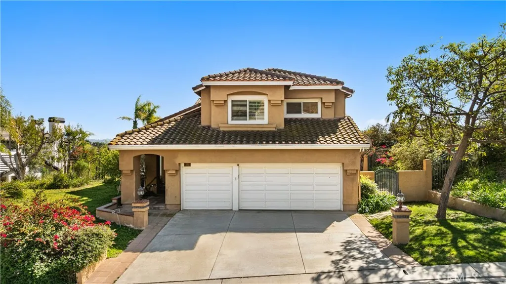 Perched on a quiet cul-de-sac in Yorba Linda, this exceptional 5-bedroom single-family residence offers privacy, expansive grounds, and breathtaking panoramic views of rolling hills, glowing sunsets, and sparkling city lights. Situated on an impressive 23,000 sq. ft. lot, this hilltop property provides a rare opportunity to enjoy serene hillside living with incredible space and stunning scenery. A welcoming foyer entry leads into a dramatic living room featuring soaring ceilings and oversized windows that flood the home with natural light while framing the spectacular views. The elegant formal dining room comfortably accommodates a large dining table and offers direct access to the backyard—perfect for enjoying meals while taking in the incredible sunset and city-light vistas. The kitchen features a center island, wood cabinetry, and granite countertops, and opens to the inviting family room with direct backyard access, creating a seamless indoor-outdoor flow ideal for both everyday living and entertaining. A desirable main-level bedroom provides flexible space for guests, extended family, or a home office. A graceful curved staircase leads to the second level where four additional bedrooms offer comfortable living space, including a room ideal for a study or office. The spacious primary suite serves as a private retreat and features an ensuite bathroom with separate soaking tub and walk-in shower, along with access to a large private balcony—the perfect place to relax and enjoy sweeping hill, sunset, and city-light views. The backyard is the true highlight of the property, offering a private outdoor oasis with a PebbleTec pool and spa, built-in BBQ, expansive patio areas, and a generous lawn. With its elevated hilltop setting and massive lot size, the backyard captures spectacular sunset and city-light views, creating a stunning setting for relaxation or entertaining. Additional features include a private driveway, three-car garage, and nearby access to the scenic S Ridge Trail, perfect for hiking and enjoying the natural beauty of Yorba Linda’s hillside environment.