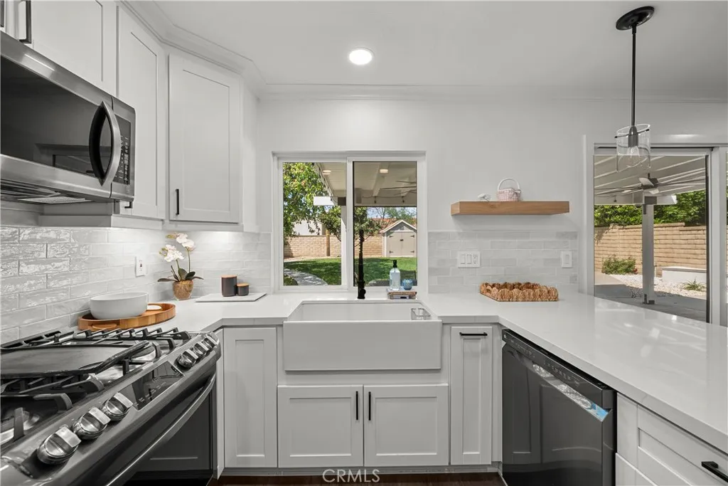 Welcome to this beautifully upgraded and move-in ready home in the highly sought after neighborhood of Circle J Ranch! As you enter you will be impressed by the high ceilings and light that this home offers. Some of the many upgrades include a newer tile roof, rain gutters, and all windows have been replaced providing both quality and peace of mind. The kitchen, downstairs bathroom and upstairs hall bathroom have all been upgraded! In the living room there is a custom media wall with cabinets and shelving. In the dining area there is a built in buffet with illuminated shelving and features a dual-zone refrigerator! Enjoy enhanced interior lighting with recessed lighting in the living room, dining room, and primary bedroom, creating a bright yet inviting ambiance. Step outside to a beautifully designed patio cover equipped with ceiling fans, lighting, speakers, and electrical outlets—ideal for entertaining or relaxing year-round. The widened driveway accommodates up to three vehicles and includes desirable RV parking. The very spacious backyard features two mature fruit trees—orange and lemon! This is a true pride-of-ownership home that blends quality, beauty, function! This home is situated on a cul-de-sac!