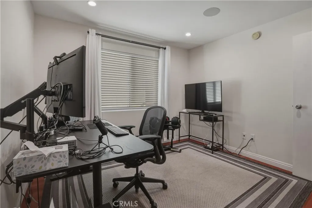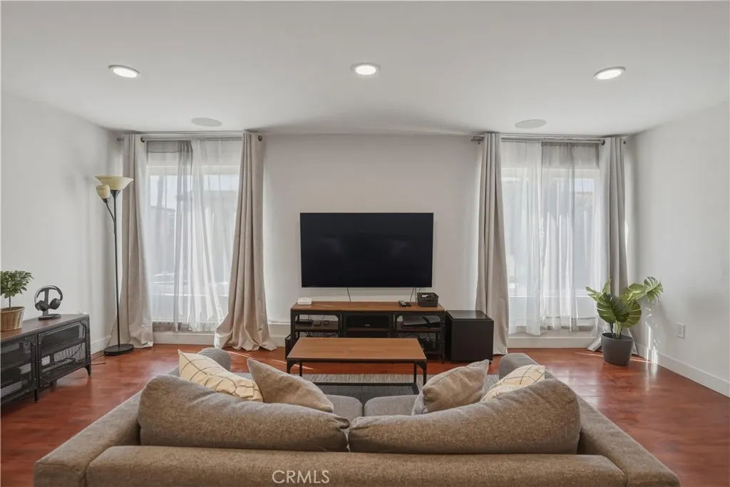 Beautiful 2-bedroom, 2-bath condo located in a gated community. This light-filled first-floor end unit offers an open floor plan with newer windows (2022), recessed lighting, built-in living room speakers, and laminate flooring throughout. The kitchen is equipped with a dishwasher and built-in microwave, making it both functional and convenient. The primary suite features two closets, an en-suite bathroom, and a private balcony overlooking the pool. Additional highlights include secured building access, two covered tandem parking spaces behind a security gate, community laundry, and a beautifully maintained complex with a sparkling pool. Only 28 units in the community and conveniently located near shopping, dining, parks, and schools, this move-in ready condo offers an exceptional opportunity in a highly desirable location.