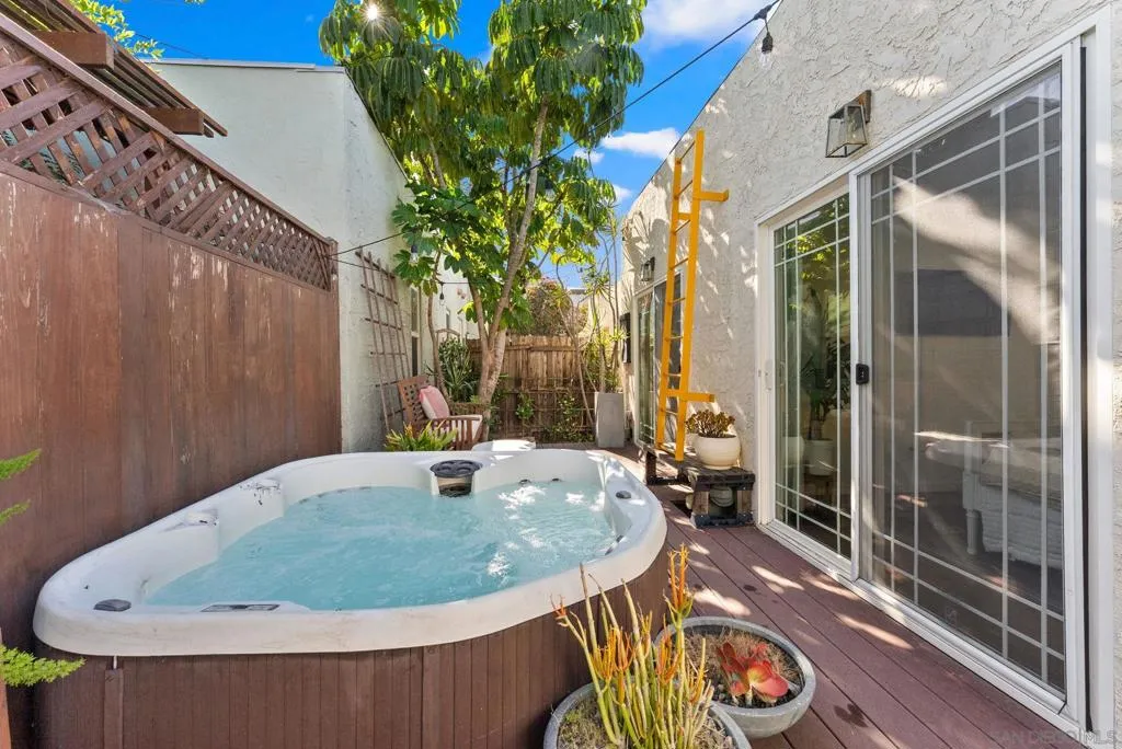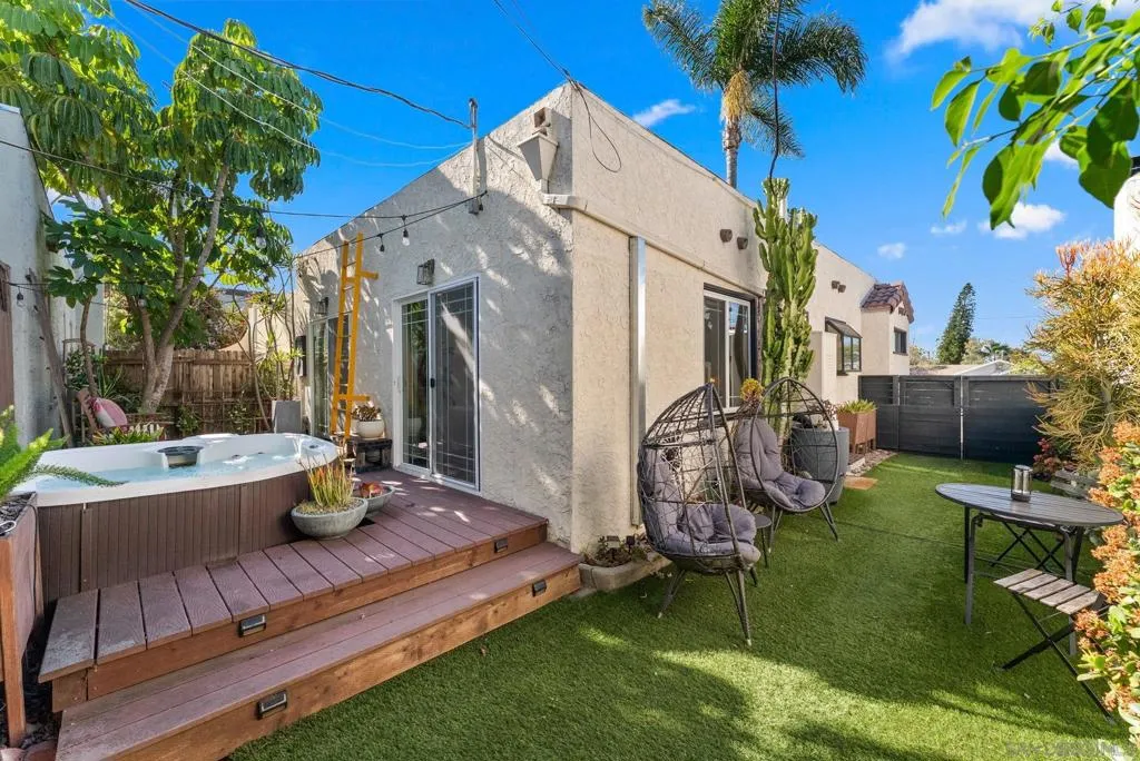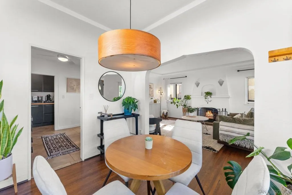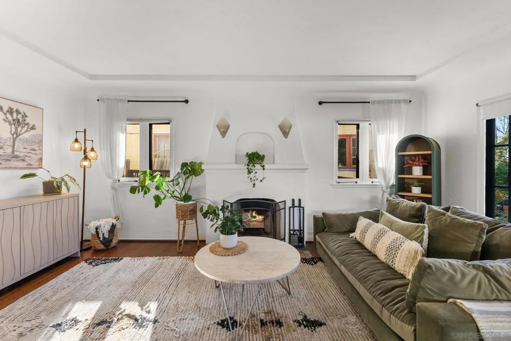 Tucked north of Adams Avenue in the heart of Normal Heights, this charming 1929 Spanish blends timeless character with thoughtful modern updates in one of San Diego’s most walkable neighborhoods. Set behind lush, drought-conscious landscaping, the home welcomes you with classic architectural details including textured stucco, arched accents, and original windows that fill the space with natural light. Inside, the living room exudes warmth and style with hardwood floors, coved ceilings, and a statement fireplace that anchors the space. The dining room showcases original built-ins and an inviting layout, perfect for both everyday living and entertaining. The updated kitchen offers a clean, modern contrast with sleek finishes, ample storage, and a functional flow. Both bedrooms are well-sized and filled with natural light, while the bathroom maintains its vintage charm with a tasteful edge. The bedrooms also have direct access to the private backyard which is a nice touch and rare for older homes. Step outside to a private backyard oasis designed for the San Diego lifestyle. Enjoy multiple outdoor living areas including a spacious deck, spa, and low-maintenance turf, all surrounded by mature landscaping and ambient lighting—ideal for relaxing evenings or hosting friends. Just moments from the vibrant shops, cafés, and restaurants along Adams Avenue, this home offers the perfect balance of historic charm, modern comfort, and unbeatable walkability in one of San Diego’s most sought-after neighborhoods.