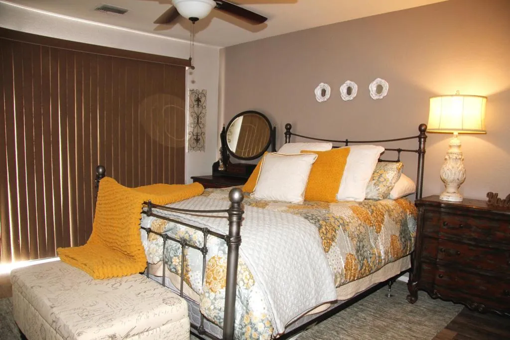 One Year Minimum Unfurnished Lease . Located in Ironwood CC in the last group of townhomes going up Foxtail so you have beautiful Views ,Large Open space and easy access to community pool and spa.( Unit has its own private spa in the courtyard). Don't think that because this has 2 levels that you will be up and down all day Primary Suite is on main floor with Kitchen and Dining and Living room. Guest Suite is just three (3) steps down and even has small patio. Only the Den/office Loft is up the stairs. The two story ceiling gives a dramatic feel to the home. Large space for formal dining as well as breakfast bar at granite kitchen counter. Direct garage access is on ground floor - same level as Guest Suite, Hall and good sized closet. Primary is carpeted along with stairs and loft.Guest has wood laminate and tile is through rest of home. Enjoy the environment of Ironwood -Secure and high in the hills. Pictures show current tenant's furniture. She would sell the Couch, coffee table end table dining table, guest bedroom set, master dresser and nightstands. AVAILABLE MAY 1 Can be seen after the 20th of April