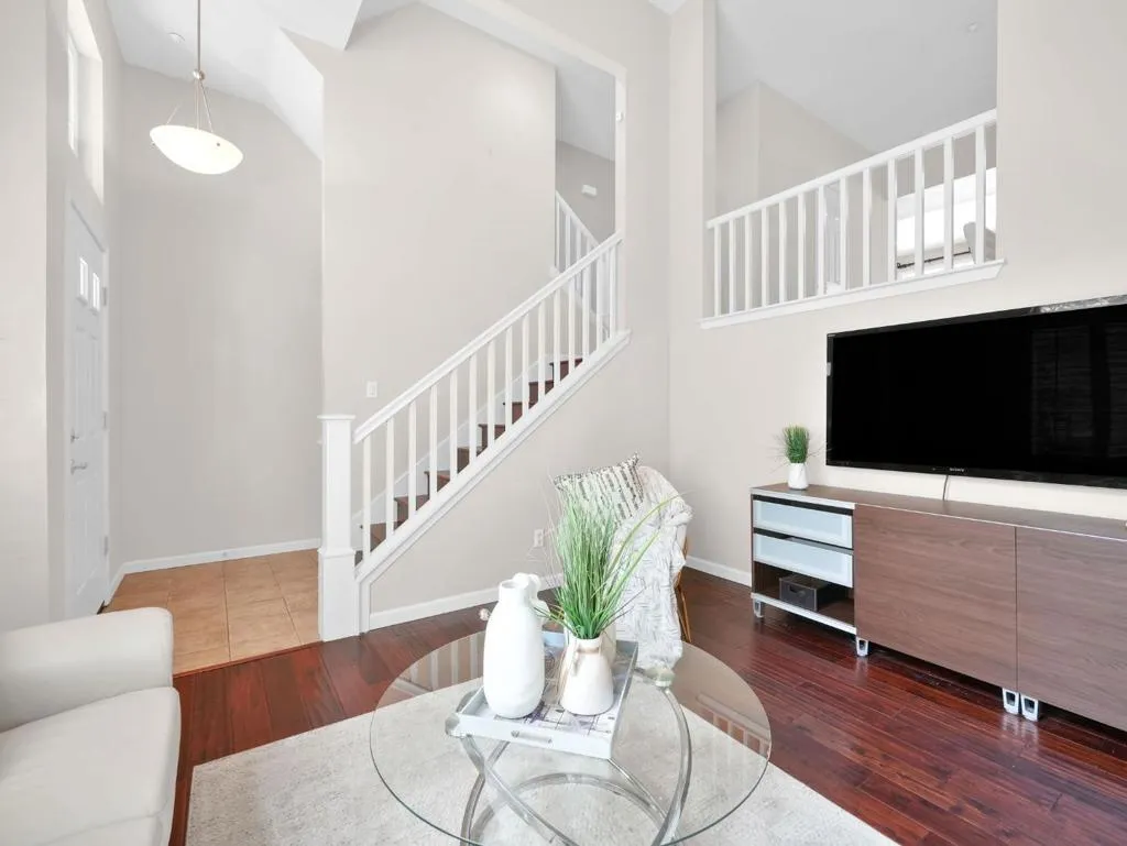 Nestled in the highly desirable St. Leos neighborhood of San Jose,this 2-bedroom, 2.5-bathroom townhome offers the perfect blend of quiet residential living and unbeatable central convenience. Located on a peaceful cul-de-sac, the property provides a sense of privacy while being just moments from everything Silicon Valley has to offer.Positioned just off The Alameda,one of San Joses most charming & historic corridors,youre surrounded by tree-lined streets,local cafes,& boutique dining.Inside, the home features soaring ceilings,rich hardwood flooring,and a bright open-concept layout that creates an inviting & spacious feel.The updated kitchen offers a functional layout with a center island & flows seamlessly into the dining and living areasideal for everyday living and entertaining.The living room is anchored by a cozy fireplace,while both bedrooms offer en-suite privacy,including a spacious primary suite.Additional highlights include central A/C & heating, an attached 2-car garage,and top-floor laundry.The home is minutes from Downtown San Jose,offering easy access to vibrant restaurants,nightlife,and cultural destinations.Outdoor and lifestyle amenities are equally accessible,with nearby parks,walking paths,and neighborhood charm that gives this area a strong community feel.