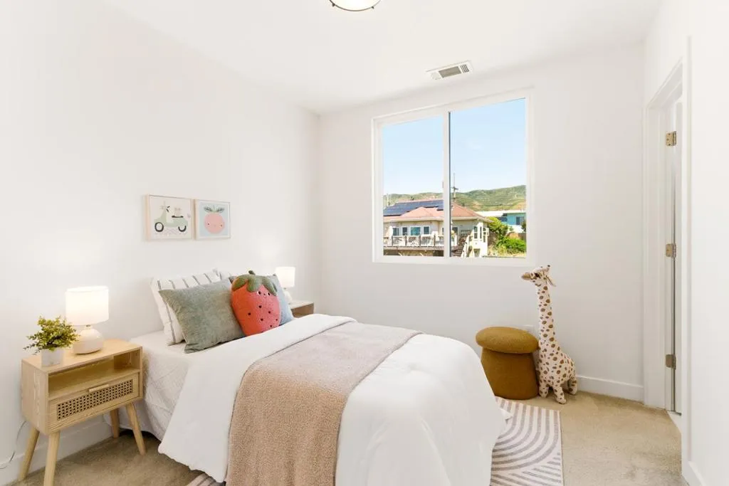 Welcome to 1249 Edgewood Way, a beautifully updated 3-bedroom, 3-bath townhouse-style condo in South San Francisco. Offering approximately 1,496 sq ft, this multi-level home features modern finishes, natural light, and a functional layout. The main level showcases an open living, dining, and kitchen area with recessed lighting, large windows, and luxury vinyl plank flooring. The kitchen features stone countertops, stainless steel appliances, a marble tile backsplash, and a large island with sink and bar seating. A bedroom and full bathroom on this level provide flexibility for guests or extended living. Upstairs, two spacious bedrooms each include ensuite bathrooms. The primary suite features a double-sink vanity and glass-enclosed shower. Plush carpeting adds comfort to the upper level. Additional highlights include a private enclosed front patio, in-unit laundry, and an attached two-car garage. Community amenities include a basketball court and play structure. Conveniently located near BART, Costco, Trader Joes, shopping, dining, and major commuter routes.