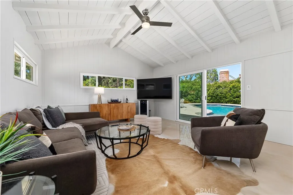 Welcome to a truly rare offering in Los Angeles—where expansive space, privacy, and limitless potential converge on an exceptional flat half-acre lot. Located in the coveted College Acres neighborhood in Woodland Hills. This impressive 100' x 220' property features double electric gates, a circular driveway, and convenient rear yard access, creating both presence and privacy. The beautifully maintained main residence exudes classic ranch-style curb appeal and offers approximately 1,924 square feet of thoughtfully designed living space with three bedrooms and three bathrooms. Complementing the home is an additional pool house/office of approximately 350 square feet, easily convertible into an ADU for added flexibility or income potential. A custom oversized front door welcomes you into a spacious living room highlighted by a fireplace, soaring cathedral wood ceilings, and rich wood flooring. The updated kitchen boasts granite countertops and a breakfast bar that opens seamlessly to a stunning dining room featuring a dramatic floor-to-ceiling brick fireplace, built-in grill, and charming window seat—perfect for memorable gatherings. The primary suite is a serene retreat with dual closets featuring built-ins, a skylight that fills the room with natural light, and a beautifully renovated bathroom complete with double sinks, quartz countertops, and an oversized shower. Wide-plank oak floors, newer doors and windows, and sliding glass doors throughout the home further enhance the bright, airy atmosphere. Step outside to a covered porch and enjoy quintessential California living. The backyard oasis features a PebbleTec pool with a Baja bench and built-in spa, ideal for both relaxing weekends and entertaining under the sun. A large grassy yard, whimsical treehouse, and metal three-car garage add even more appeal. What truly sets this property apart is its remarkable development potential. This is a rare opportunity to expand the existing home, build a custom estate, create a multi-generational compound, or develop multiple residences. Whether you envision a forever family home, a private estate with room to grow, or an exceptional investment opportunity, this property offers unmatched versatility in one of Los Angeles’ most desirable areas. Cherished by only two owners over the last 76 years, opportunities like this are exceedingly rare. Live in it, expand it, or build something extraordinary—this is a once-in-a-generation offering.