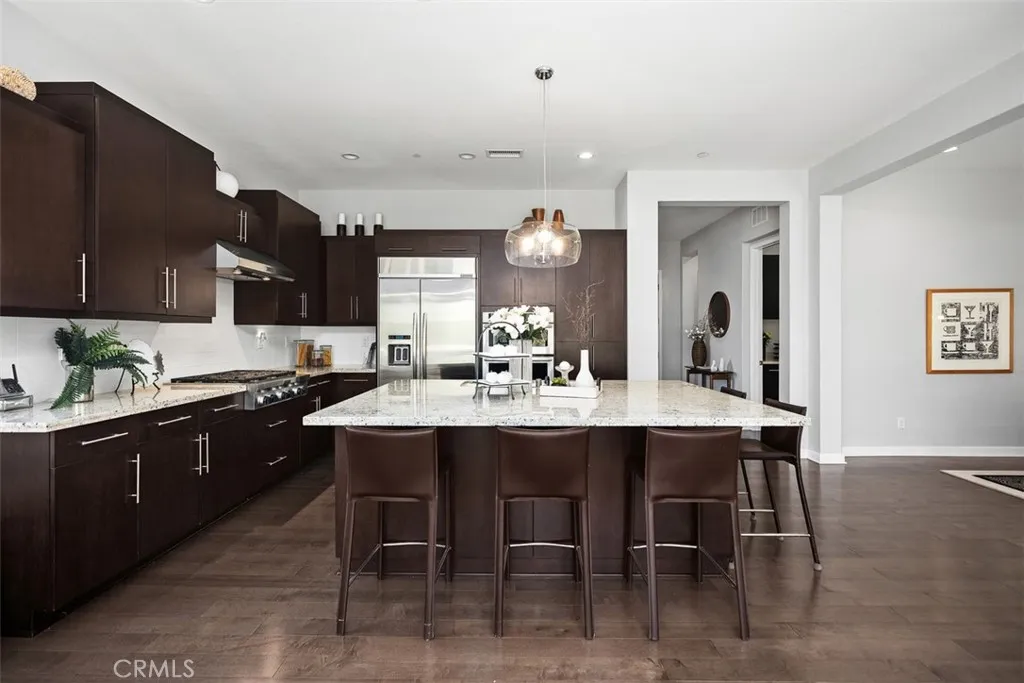 Live your best life in this beautiful light and bright single level home! This two bedroom and two bath plus den (could turn this to a 3rd bedroom) is located in the exclusive gated community of Gavilan-Sendero in Rancho Mission Viejo ( 55+ community). This beautiful home features an open floor plan, chef’s kitchen with top of the line appliances, large kitchen island, exquisite granite counters, wood floors, luxurious primary suite, walk in closet and a large inside laundry room are just a few of the upgrades. Home is situated on a large corner parcel with views of the hills, picturesque garden and an ever so fun putting green. Close to “The Hacienda”, this gated clubhouse offers spaces for serious fun and relaxation. HOA amenities include a collection of indoor/outdoor community facilities set around scenic courtyards with panoramic hillside views, sparkling pools, fitness center, pickleball, and bocce play.