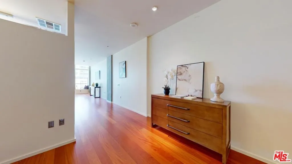 This large 1 bedroom floor plan is tucked away on the 5th floor of EVO. West facing with a 180 degree panoramic view of DTLA your spacious balcony and the extra square footage in your open living/dinning area is ideal for lounging and simply taking in the views. Walk in laundry closet and large bedroom enclave provide all the room you need to enjoy loft style living. The resort style building offers several amenities: Rooftop gym, heated infinity pool, spa, chef's kitchen, roof top lounge, 24 hour food/delivery front desk acceptance, secured parking and much more! Unit is in excellent condition, lightly used floors, like new appliances and barely touched walls. With a walk of score of 90 you may never have to drive again.