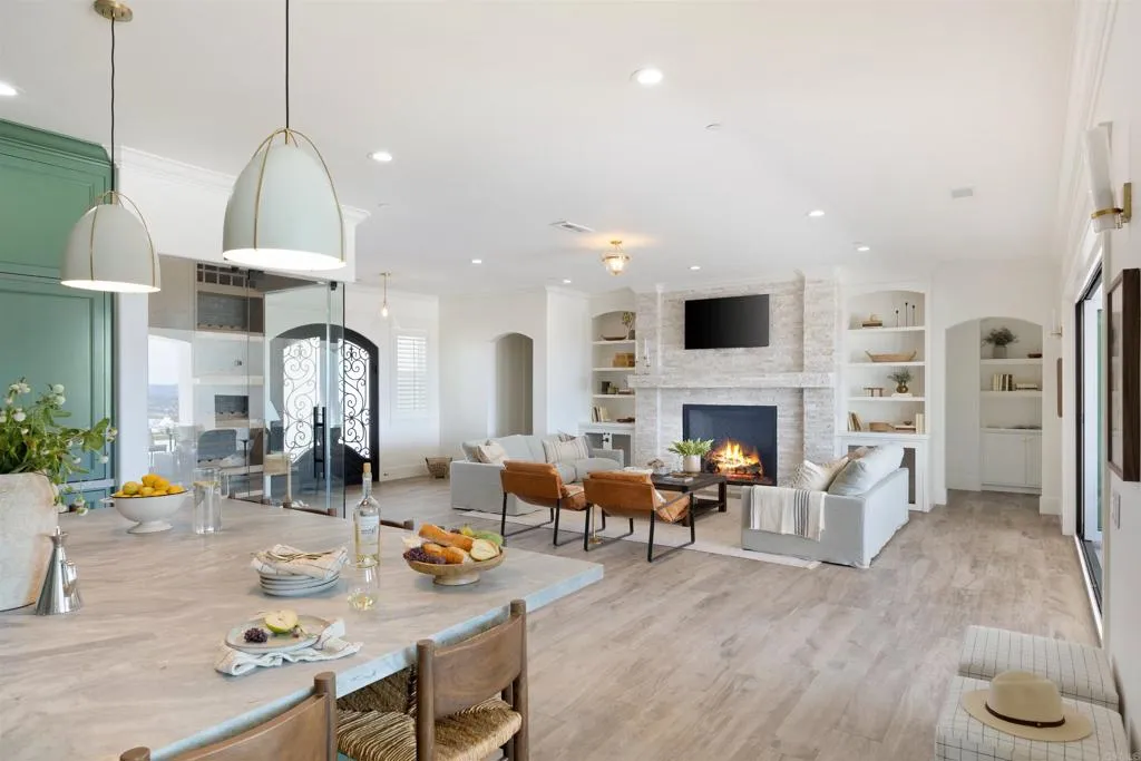 Breathtaking panoramic views, quality finishes, and luxury amenities await at this spectacular 5-acre estate in Temecula Wine Country. Thoughtful details reflect a commitment to exceptional living throughout, from the gourmet kitchen with a 60-inch professional range, dual dishwashers, and built-in espresso machine, to the custom glass wine cellar perfect for displaying your collection. Open the La Cantina doors to expand your living space onto the covered patio, complete with a fireplace and dual infrared heaters for year-round enjoyment. Outside, a shimmering infinity pool, oversized spa, and built-in gas fire pit with seating are all framed by sweeping views of the Temecula Valley. Wake up to hot air balloons overhead and wind down with stunning sunsets every evening. Entertain in cinematic style in the private 4K home theater with a 135-inch Stuart screen and eight power-reclining seats. The attached casita features its own entrance, family room, kitchenette, and bath - ideal for extended family, guests, or rental income. Dual RV hookups and a three-car garage with two EV-ready charging ports round out this one-of-a-kind property. Just minutes from Temecula's best wineries and not far from top-rated schools, and excellent shopping and dining. This is wine country living at its finest. No HOA. No Mello Roos.