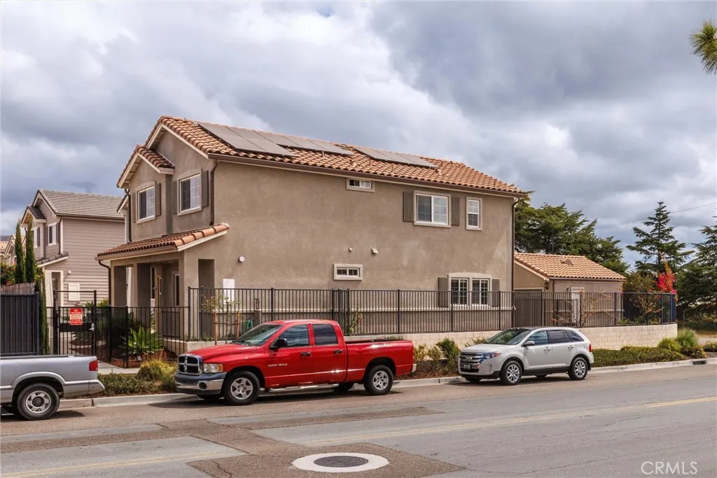Built in 2020 and located on a premium end unit lot in one of Nipomo’s newer developments, this two-story home offers modern comfort, energy efficiency, and exceptional value. A standout feature of this property is the owned solar power system with full whole-house battery backup, providing energy efficiency, cost savings, and peace of mind. Seller will pay off the existing solar lease at close of escrow with acceptable offer, allowing the buyer to enjoy the benefits without added expense. The flexible floor plan includes 4 or 5 bedrooms and 3 full bathrooms, with a possible main-level bedroom and full bath—ideal for extended family, or a home office. The open-concept kitchen is designed for both function and entertaining, featuring abundant cabinetry, granite countertops, stainless steel appliances, and seamless flow into the main living area. Upstairs, you’ll find 4 additional bedrooms, a convenient laundry room, and a spacious primary suite complete with a spa-like bathroom, dual sinks, soaking tub, and walk-in shower. As an added incentive, the seller is offering a $10,000 flooring credit, allowing the buyer to customize to add to their personal touch. Highlights include Rinnai tankless water heater, EV charging capability, fire sprinkler system. and a detached 2-car garage. The private stone patio and low-maintenance yard create an inviting outdoor space without the upkeep. End unit offers privacy and access to extra on street parking. Ideally located near shopping, with easy access to Highway 101 and just minutes from the Pacific Ocean, this home combines modern living with Central Coast convenience.