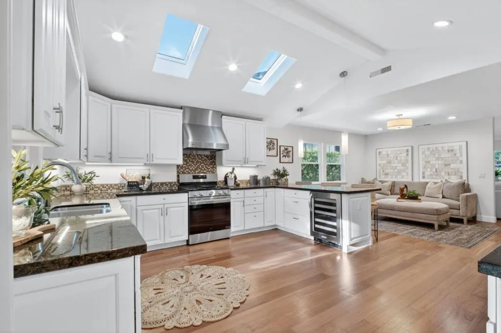 Beautifully rebuilt in 2008, this high-quality home offers large common areas made for entertaining, including a generous living room & great room including an expansive chef's kitchen, family room & dining...this kitchen is a huge standout!! Designed for the serious chef: new gas range & refrigerator, abundant cabinetry, lots of work space, casual bar dining, wine fridge, skylights. Spacious living room with cozy fireplace. Bright & private primary suite is divine, overlooking the backyard with slider that brings the outside in, also a generous walk-in closet. Brand new owned solar- estimate 9-10 months a year free electricity!, dual-pane windows, refinished hardwood floor, new paint in and out, new landscape, convenient inside laundry room. Two good-sized bedrooms & full bath. You will love this floor plan! The outdoor space is delightful - grown your own veggies, privately lounge in the spa, dine al fresco - ready for your backyard fun! With its thoughtful updates, large-scale living spaces & move-in ready appeal, this home presents an exceptional opportunity in a desirable location. Low-traffic street. Centrally located - so close to Santana Row, Downtown Campbell, Pruneyard. Garage can be a great bonus room! Close to BASIS Independent, St. Martin of Tours. This is a true gem