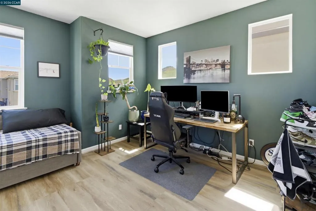 Beautiful 5-bed, 3.5-bath home offers 3,257 sqft of bright, open living space with stylish, contemporary finishes throughout. Features include double primary suites, one on each floor, an elegant spiral staircase & distinct 9ft ceilings. Open gourmet kitchen with granite counters, spacious pantry, breakfast nook & newer SS appliances. Upstairs, primary suite features walk-in closet, shower & separate soaking tub. Plus 3 spacious bedroms, loft, laundry & large hall bath. Downstairs, the Jr suite includes full bath, walk-in closet & private patio slider to backyard. Thoughtfully designed with abundant storage, luxury vinyl floors thru-out & new custom blinds. Entertainer’s dream backyard, with stamped concrete patio & fully equipped outdoor kitchen with plumbed gas BBQ, mini fridge. Large freshly painted deck with drainage system adds additional functional space, the upper-tier garden includes raised beds with an integrated drip irrigation system & several fruit trees (Avocado, Apple, Lime, & Kumquat). Auto sprinklers in front & backyards. Owned solar panels add both efficiency & value to this exceptional home. Nearby trails, great schools & Cordelia park, a commuter's paradise with close proximity to I-680, I-80, & mins to Benicia bridge. Don’t miss this one! OH Sat & Sun 1:30-4pm Views: Ridge