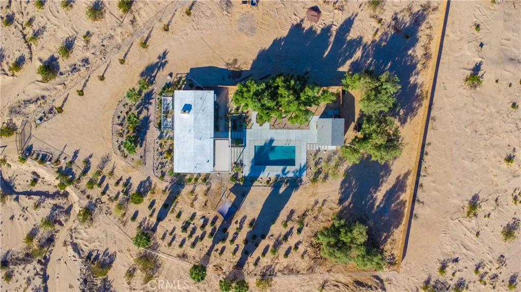 Welcome to An Oasis in the Desert. On this expansive 26.6-acre lot you will find privacy, peace and perfection. The main structure is a Mid-Century brick home with 3 Bedrooms and 2 Baths, all beautifully renovated by a local General Contractor. This Complete Renovation took the original structure down to the bare bricks. From this basis, a brand new home was constructed keeping the original, solid brick frame. A new interior was constructed adding all new electrical, plumbing, fixtures, and appliances. This double-walled and insulated structure provides the type of quiet we all desire as well as protection from the outside elements. When being outdoors is craved, this property boasts a brand-new inground pool, complete with a floating pathway around the pool, the spa, and between the house and guest house. This outdoor area is surrounded by a wide variety of original and new indigenous plants and rocks to create a stunning tropical environment. All plants are on a sprinkler system to make their enjoyment stress-free. The guest quarters is found at the far end of the pool area and has an outdoor shower and both an exterior access bathroom and an interior bath. The above-ground spa is also brand new and has the perfect adjustments for the jets and temperatures to help you unwind. The attached 20-acre parcel is perfect for exploring, hiking or developing into anything a new owner may desire. The water supply is a well that was recently upgraded. Enjoy bird watching or enjoying the night sky beyond what you have ever experienced. This property has a gorgeous Mountain Views to both the North and South, where the world-famous Joshua Tree National Park is located. The drive to the East Entrance of the park takes only 19 minutes.