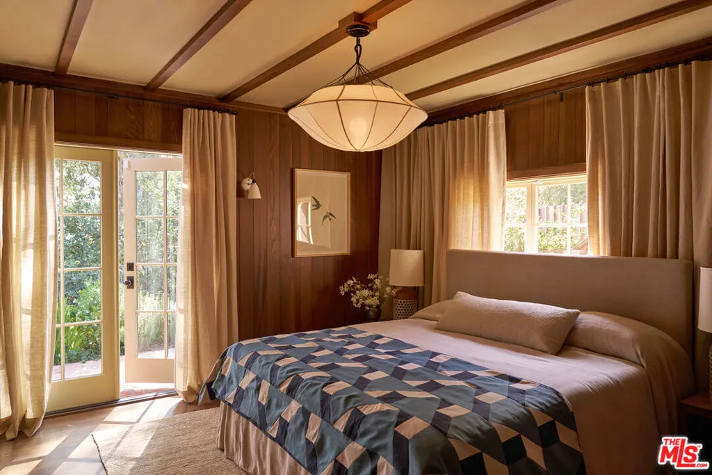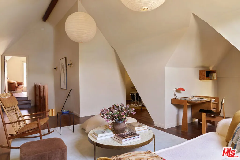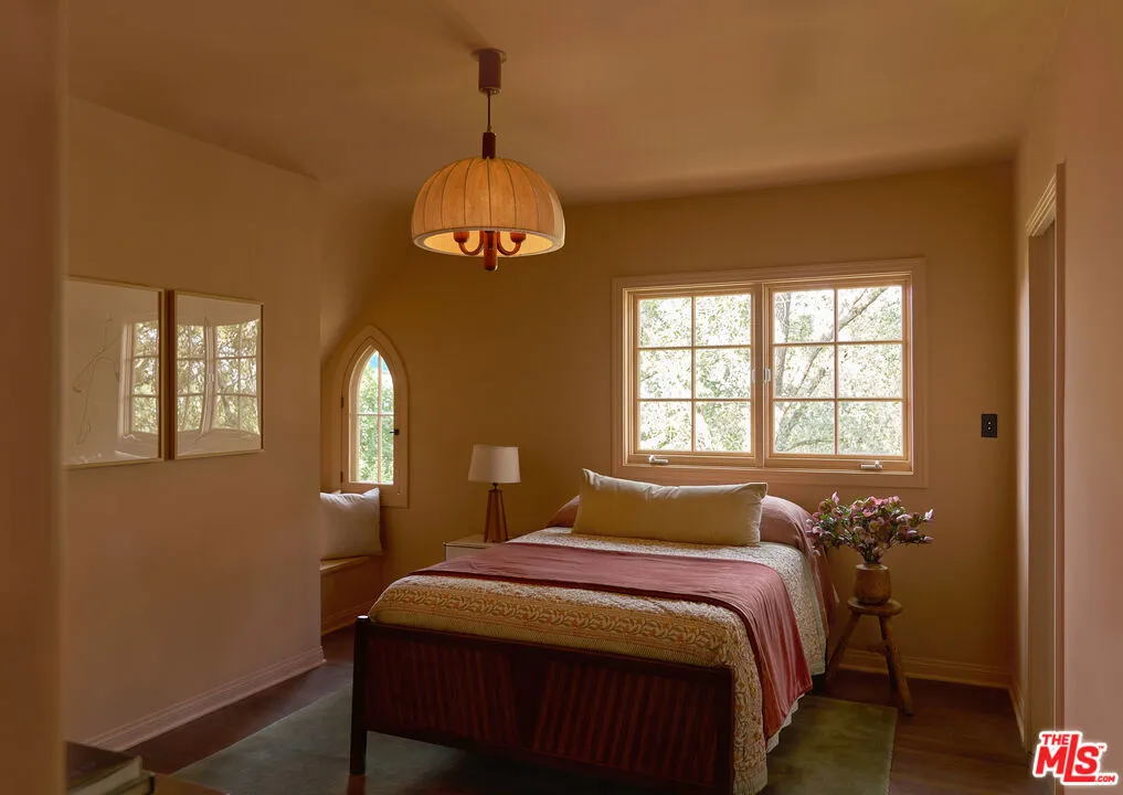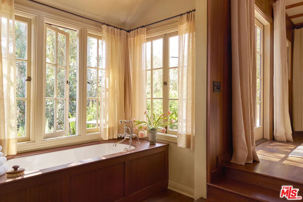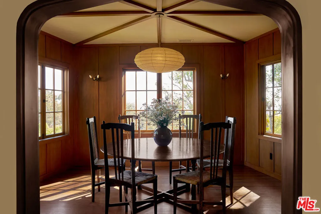 After nearly a century in the same family, this Eagle Rock residence has been thoughtfully restored and reimagined. The home achieves the feeling of having always been this way while seamlessly adapted for modern living. Perched on a hilltop and ideally located near Occidental College, the property offers a rare sense of privacy with it's lush mature landscaping, vibrant gardens and fruit trees that create a peaceful, orchard-like setting. From multiple rooms, the home captures beautiful mountain views that further enhance its serene and secluded feel. The main level has an ideal layout with four bedrooms and three bathrooms, and is anchored by a warm and inviting living room with wood beam ceilings, restored original windows, and hardwood floors that reflect the home's timeless character. Upstairs, a secondary living space offers architectural nooks and flexible use, along with a fifth bedroom with its own private entrance and ensuite bathroom that is perfect for guests, a creative studio, or extended living. Outside, a cedar soaking tub adds a spa-like element, completing the home's unique and tranquil appeal. A truly special offering where history, design, and setting come together in one of Northeast LA's most sought-after neighborhoods.