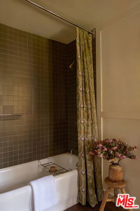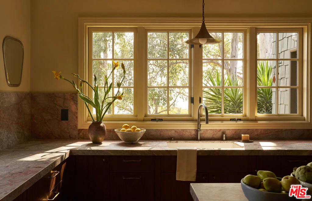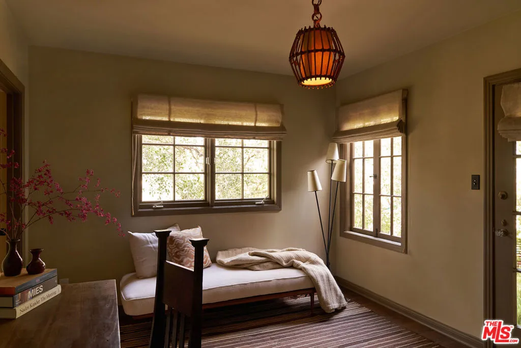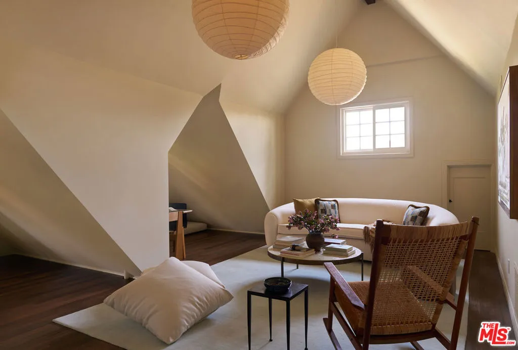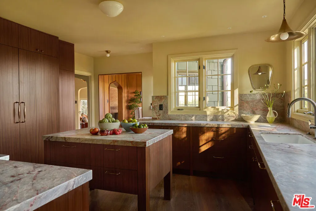 After nearly a century in the same family, this Eagle Rock residence has been thoughtfully restored and reimagined. The home achieves the feeling of having always been this way while seamlessly adapted for modern living. Perched on a hilltop and ideally located near Occidental College, the property offers a rare sense of privacy with it's lush mature landscaping, vibrant gardens and fruit trees that create a peaceful, orchard-like setting. From multiple rooms, the home captures beautiful mountain views that further enhance its serene and secluded feel. The main level has an ideal layout with four bedrooms and three bathrooms, and is anchored by a warm and inviting living room with wood beam ceilings, restored original windows, and hardwood floors that reflect the home's timeless character. Upstairs, a secondary living space offers architectural nooks and flexible use, along with a fifth bedroom with its own private entrance and ensuite bathroom that is perfect for guests, a creative studio, or extended living. Outside, a cedar soaking tub adds a spa-like element, completing the home's unique and tranquil appeal. A truly special offering where history, design, and setting come together in one of Northeast LA's most sought-after neighborhoods.
