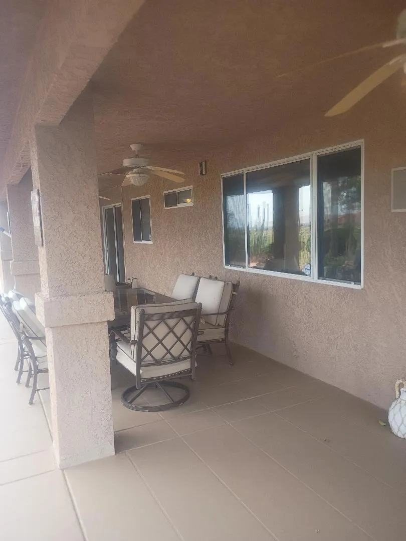 Mission Lakes 3 bedroom two bath home on the golf course with beautiful views of the mountains. This home offers great location on the 16 tee box! Enjoy watching golfers or just relaxing with beautiful fairway views. Home is well maintained inside and out. There are three bedrooms and two bathrooms and an office off the master bedroom. Back yard has covered patio and it has a cart garage for your golf cart. Mission lakes offers golfing on a Ted Robinson designed championship golf course. This gives two on title full privileges for only 507 a month. Amenities include golf, tennis courts, fitness room, swimming pools, spas, clubhouse pro shop and much more. Not many homes on the golf course and this one is priced perfect.