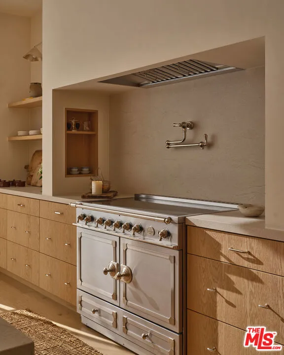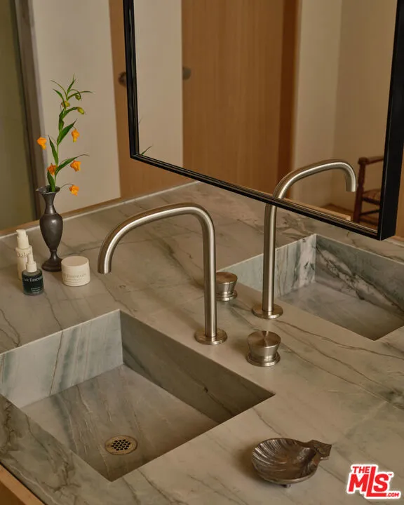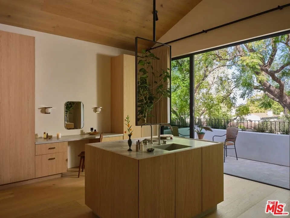 Grounded, elegantly livable, and easy to settle into, Ventura Canyon was designed and built by SLS Properties Inc., with interiors by Jenni Kayne. The home leads with material, proportion, and quiet confidence, featuring a restrained palette of plaster, warm wood, and veined marble layered in a way that feels naturally cohesive. At the center of the home, a sunlit atrium elevates the space and brings in an abundance of natural light, creating a sense of openness and connection throughout the main living areas. The layout is both thoughtful and functional, offering an en suite office on the main level and four en suite bedrooms upstairs. The spacious primary suite is generous in scale and features dual balconies along with a beautifully appointed bath complete with a floating vanity and mirror, soaking tub, large shower, and dedicated makeup stationan everyday retreat that feels like a spa. On the main level, large sliding doors create an effortless connection to the outdoors, with a pool and inviting spaces designed for both everyday living and entertaining. A fully separate ADU offers two additional en suite bedrooms, providing ideal flexibility for guests, extended family, or creative use. Though newly built, the home carries a sense of warmth and permanence close to the city, yet just removed enough to feel private, comfortable, and quietly refined.