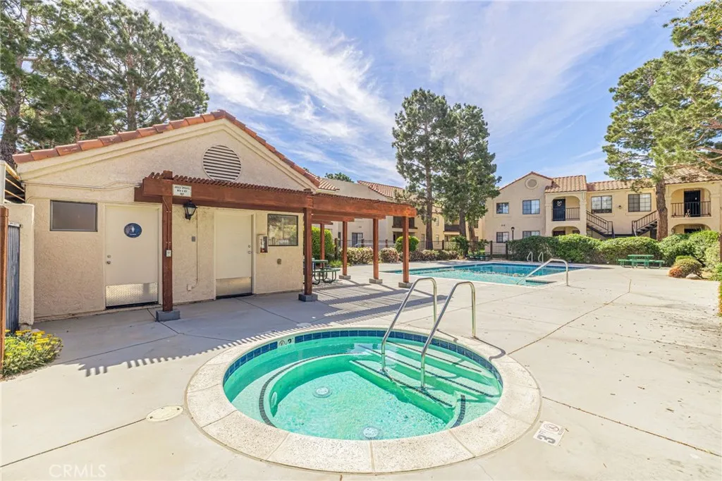 Come see this beautifully maintained 2-bedroom, 2-bathroom 853 sq ft condominium in the gated Monte Vista community! This upper-level unit features a spacious balcony and 2 primary bedrooms each with its own ensuite bathroom. Enjoy the convenience of in-unit laundry with stackable washer/dryer included. New HVAC installed. With Ring doorbell and keyless smart lock entry on both the security screen door and front door. One assigned covered parking space. Community features a park-like setting with 2 pools, 2 spas, dog walk area, and 24-hour gated security. Easy access to the 14 Fwy, shopping, and dining. This home is a must-see!