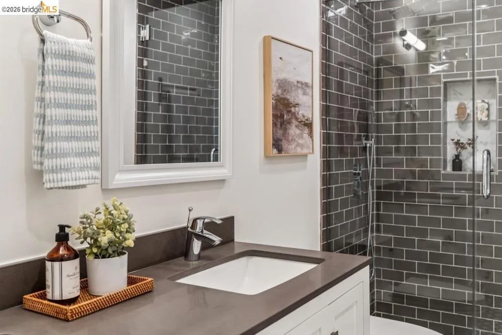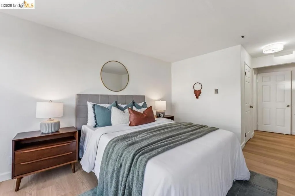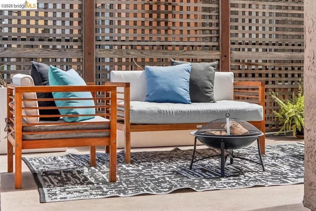This bright, updated corner condo features a large private patio that invites you to lounge, dine, and garden to your heart’s content. The 2 ensuite bedrooms provide separation of space, while the generous outdoor area, dining room, and living room with fireplace encourage gatherings with friends & family. Throughout the unit, new LVP flooring (2026), fresh paint, and abundant natural light offer a warm backdrop, while bolder design choices lend personality and good vibes. The updated kitchen features soft-close drawers, ample cabinet space, and a sparkling new fridge (2026). The light-filled primary bedroom includes a walk-in closet and updated bath with double sinks, sleek countertops, and gorgeous tile. The second bedroom features a custom Murphy bed, making it easy to convert an office by day to a guest room by night, or would make a great kid’s room, roommate retreat, or creative space, complete with a large closet and split bathroom with tub. In-unit laundry and a dedicated parking space make city life a breeze, as does the elevator building with step-free entry. And the prime Cleveland Heights location, 2 blocks from Lake Merritt, puts gorgeous views, recreation, popular restaurants, a weekly farmers’ market, and public transit easily within reach. Welcome home.