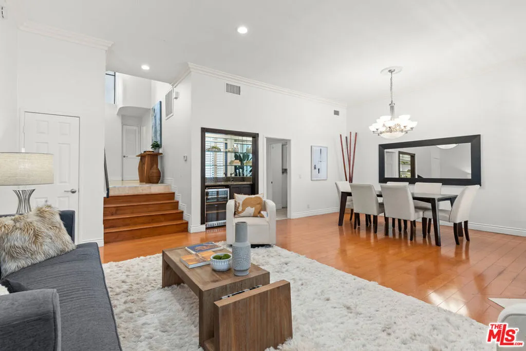 Spacious 2 bed, 2.5 bath townhome-style condo in prime Brentwood location, just minutes away from restaurants, coffee shops and retail on trendy San Vicente Blvd. Located in a quiet corner of this contemporary condominium building, with lovely center courtyard pool surrounded by lush mature landscaping. As you enter you are greeted with the high ceilings and tons of natural light that make this home different from most condominiums. There is a powder room perfectly situated at the entry before you step down into the spacious living room with wood floors, soaring ceilings, romantic fireplace and wet bar, perfect for entertaining. The dining area opens to a patio to capture the cool breeze and is perfectly situated just off the kitchen. The laundry room completes the lower level. The upper level comprises the oversized primary suite with a second fireplace, large walk-in closet, and a spa-like primary bath with dual sinks, walk in shower, separate tub and skylights overhead. The second bedroom, full bathroom and loft area, which can be used as a home office, complete the upper level. Brand new carpets just installed on the upper level. Other building features include controlled access, airy courtyard walkways, 2 single parking spaces, additional storage and 11 guest parking spaces.