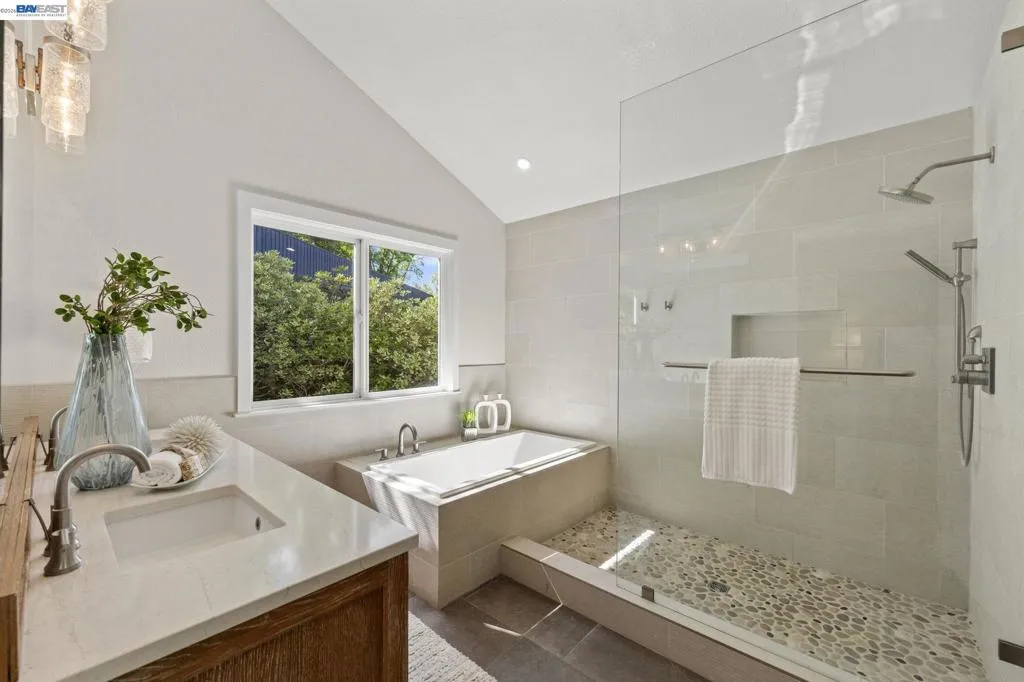 Nestled at the top of a peaceful court, this stunningly remodeled and expanded single-story home is the perfect blend of luxury, comfort, and convenience. Located just blocks from Downtown Pleasanton, Kottinger Park, and Valley View Elementary, this property offers privacy and accessibility in one beautiful package. Boasting 4 bedrooms, 3 bathrooms, a dedicated office, and a spacious family room with a bonus area, this home is designed for modern multigenerational living. The gourmet chef’s kitchen is a showstopper, featuring high-end stainless steel appliances, custom cabinetry, Caesarstone Counters, a generous walk-in pantry, and an oversized island ideal for entertaining. Step outside and be transported to a backyard sanctuary like no other. The expansive pie-shaped lot feels like a private meadow, complete with fruit trees, vibrant flowers, and a garden area, The sparkling pool and inviting outdoor spaces make it the ultimate location for summer gatherings or tranquil evenings under the stars. With owned solar, a newer roof, updated AC and ducting, and meticulous maintenance throughout the years, this home is as efficient as it is stunning. Rarely does a property this special come along—don’t let it slip away!