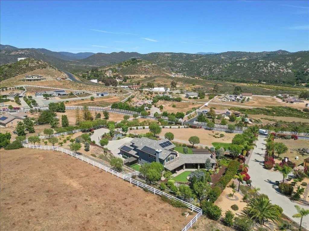 Experience the ultimate blend of rustic Craftsman elegance and 21st-century independence. Perched on over two acres with sweeping mountain and valley views, this one-of-a-kind estate—meticulously crafted by a master builder—offers exceptional comfort, security, and self-sufficiency. Thoughtfully upgraded for modern living and peak performance, the home features dual solar systems with approximately 27 panels working in tandem to deliver a rare revenue-neutral energy profile. Enjoy year-round comfort with central air conditioning, a newly installed whole-house fan designed to capture refreshing mountain breezes, and a tankless water heater for on-demand efficiency. A Generac whole-house backup system ensures uninterrupted power, while a fire sprinkler system adds peace of mind. Professionally installed artificial turf in both front and back yards provides a lush, low-maintenance landscape year-round. Inside, a dramatic 21-foot entry welcomes you into a warm, refined interior highlighted by natural stone, reclaimed barn wood ceilings, and European oak flooring. The open-concept main level showcases a chef’s kitchen with striking Rocky Mountain granite, a hidden butler’s pantry with wine storage, and a cozy living area anchored by a wood-burning fireplace. A convenient downstairs guest suite with a private ensuite bath is ideal for visitors or multi-generational living. Upstairs, the primary retreat features a private balcony with panoramic valley views, dual vanities, and a spa-inspired bath. Two additional bedrooms and a full bath offer flexibility for family, guests, or a home office. Custom Edison bulb fixtures and LED staircase accents add distinctive character throughout. Step outside to a resort-style setting designed for both relaxation and entertaining. The covered outdoor living area features ceiling fans, a 65" TV mounted above the fireplace, and a built-in beer tap—perfect for hosting. Additional features include an outdoor BBQ island and fire table with polished concrete countertops, a custom crane-placed boulder waterfall, a 4-hole putting green, a wood-burning fire pit, and a fully enclosed professional-grade dog run. Mature fruit trees—including grapefruit, orange, lime, and apple—enhance the property’s charm and provide a touch of orchard living. As the sun sets, the property transforms into a nighttime showcase, with professionally designed LED lighting illuminating the tree-lined entry and artisan stonework. The fully fenced grounds offer exceptional privacy, featuring a custom stone and paved entry with infrastructure in place for an automated gate. Additional amenities include a 3-car garage with epoxy flooring and custom cabinetry, a whole-house water purification system, and multi-zoned acreage suitable for recreation, privacy, or equestrian use. More than a home, The Ortega Road Lodge is a private sanctuary designed for those who value luxury, independence, and peace of mind.