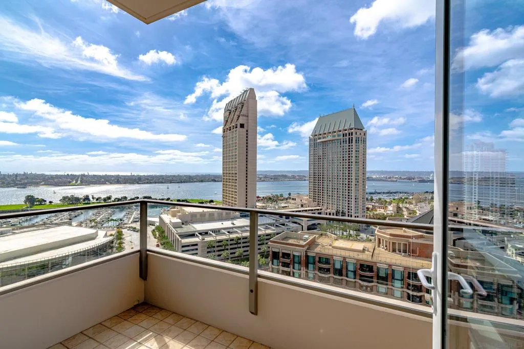 Located on the SW corner of the prestigious Executive 18th floor, this premier 2-bed, 2.5-bath residence at The Pinnacle Marina Tower showcases breathtaking sit-down views spanning the San Diego Bay and Pacific Ocean. Expansive 10+ foot ceilings, elegant marble floors, and dramatic floor-to-ceiling windows flood the open-concept interior with natural light, perfectly framing the ever-changing coastal panorama. The chef’s kitchen features Sub-Zero and Bosch appliances, sleek Snaidero Italian cabinetry, wine cooler, and refined finishes throughout. Two private balconies offer ideal vantage points for spectacular views of the ocean and city- perfect for morning coffee at sunrise and evening sunsets. The combination of floor plan, elevation, and southwest orientation is among the most desirable in all Downtown San Diego—and rarely becomes available. Situated in the heart of the Marina District, The Pinnacle delivers an unmatched urban coastal lifestyle surrounded by San Diego’s most iconic destinations. Just moments away are Waterfront Park, Seaport Village, The Headquarters at Seaport, and the Rady Shell at Jacobs Park—home to world-class performances by the San Diego Symphony. Nearby you will also find The Gaslamp Quarter, Little Italy, and Petco Park – perfect for dining, shopping, nightlife, and entertainment. Residents enjoy a full suite of resort-style amenities including 24-hour concierge and security, a state-of-the-art fitness center with steam room and sauna, heated Olympic-style pool and jacuzzi, guest suite, social lounge, conference room, and an outdoor BBQ area. Complete with two secured parking spaces and additional storage, this exceptional residence offers a rare blend of luxury, convenience, and refined Downtown sophistication.