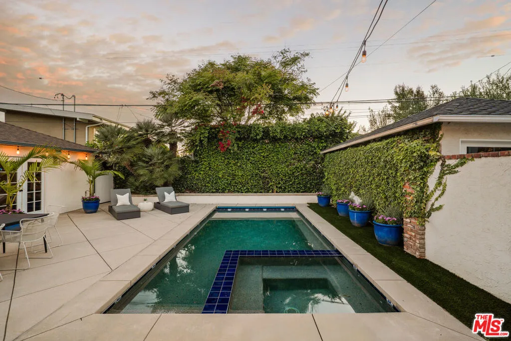 Nestled in the highly sought-after North Kentwood neighborhood, this beautifully updated pool home blends timeless character with thoughtful modern upgrades. Offering 3 bedrooms and 2 bathrooms with single-level living, the home welcomes you with warmth, natural light, and refined finishes throughout. Step inside to discover newly refinished hardwood floors that flow seamlessly throughout the home, enhancing the bright, airy interiors. Classic architectural details such as coved archways and built-in shelving add charm and sophistication, while the open layout creates an effortless connection between living, dining, and entertaining spaces. Built-in speakers throughout the home create the perfect atmosphere for everyday living and entertaining. The heart of the home is the newly remodeled kitchen, featuring quartz countertops, a designer backsplash, a new farmhouse sink, and stainless steel appliances, perfectly blending style and function for everyday living and hosting alike. The spacious primary suite offers generous closet space, a bathroom with dual sinks, and direct access to the backyard, one of three access points that create seamless indoor-outdoor flow. Outside, a private oasis awaits, featuring a sparkling pool and spa, lush landscaping, and space for both quiet relaxation and memorable gatherings. The pool features an automatic protective cover that may be walked on, along with new landscaping and drainage. Whether enjoying a peaceful morning or entertaining under the California sun, this backyard delivers the ultimate indoor-outdoor lifestyle. The garage has been converted to a bonus room/flex space/pool house with new flooring, offering additional versatility for a home office or gym. Ideally located near neighborhood favorites, including little Vons, shops, a yoga studio, and everyday conveniences, this N Kentwood gem offers comfort, style, and an exceptional Westchester lifestyle. The main house is 1,483 sq ft, and the converted garage is approximately 350 sq ft.