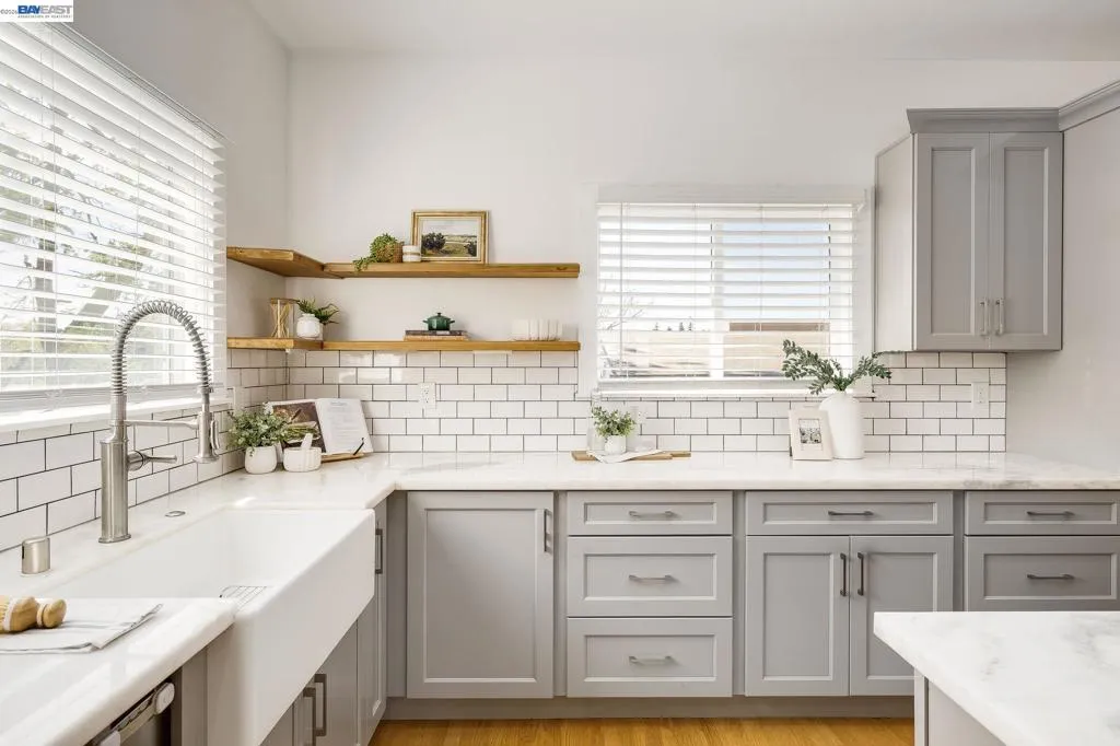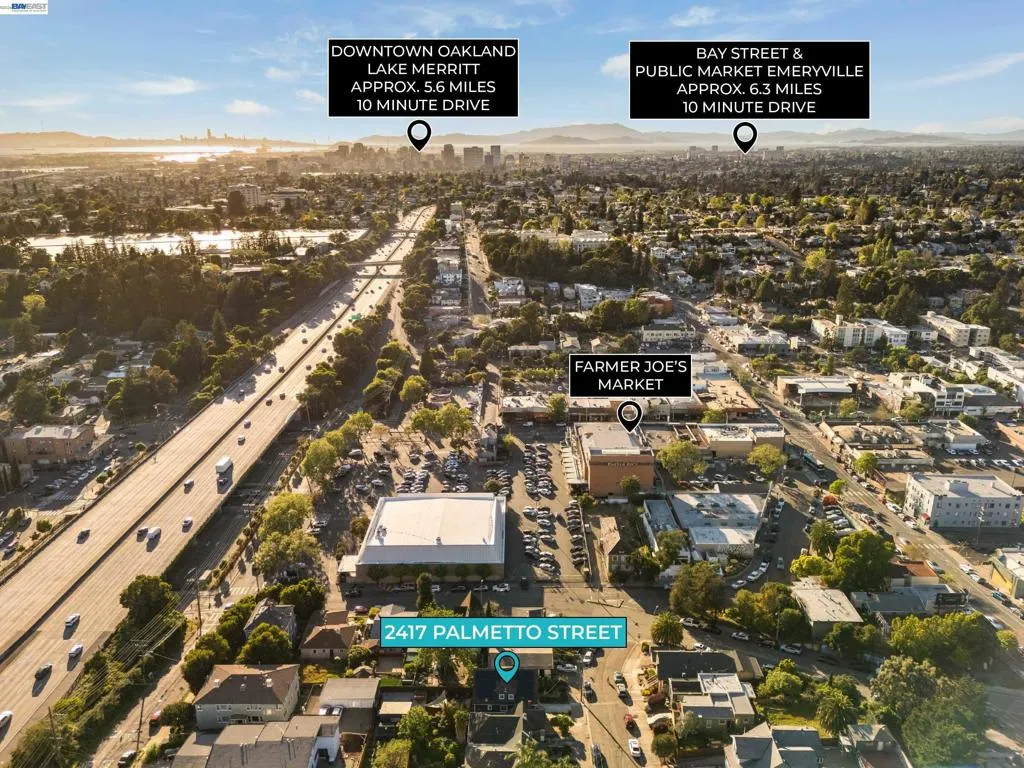 Classic 1912 Shingle Cottage, gutted and fully rebuilt in 2019/2020 with no detail overlooked. Spanning 3 levels and 2,167 SF on a 6,850 SF lot, the home features 3 beds, 3.5 baths, and a stunning open-concept main level with refinished hardwood floors, a dramatic floor-to-ceiling tiled fireplace, and a chef's kitchen with waterfall quartz island, Shaker cabinetry, subway tile backsplash, and double wall ovens. Upstairs, the vaulted cedar-ceiling primary suite offers a walk-in closet and luxurious en-suite bath with dual vanity and glass shower. Lower level includes a bedroom, full bath, kitchenette, and 2-car tandem garage — ideal for multi-gen living. Private backyard retreat with patio, decking, and lawn. Studio ADU (187 SF) with kitchenette, bath, and private entrance. Owned 7.7kW solar. Steps to Bombera, Farmer Joe's, Grand Lake Kitchen, Dimond Park, and Hwy 580