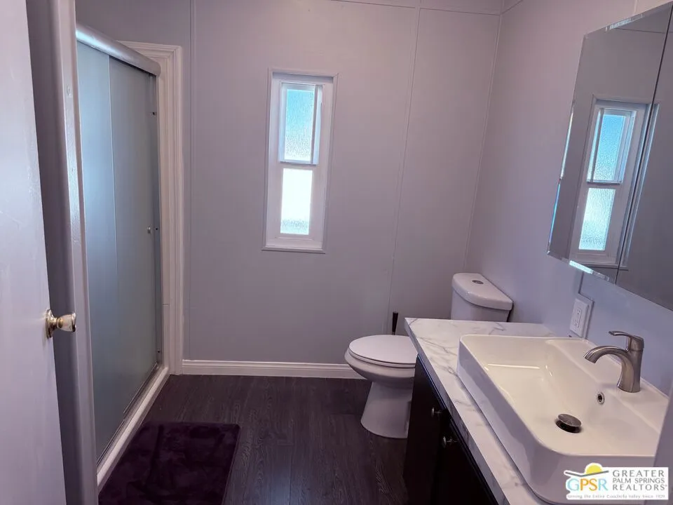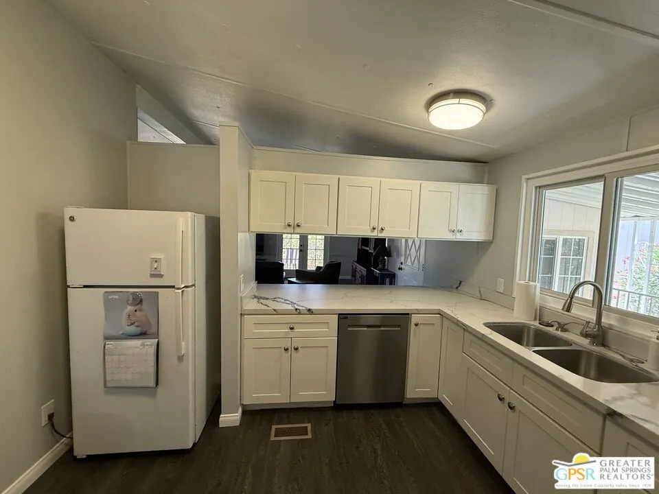 Don't miss this stunning 2 bed/2 bath recently remodeled home located at Hidden Springs Country Club, a 55+ active community in Desert Hot Springs. Soak in awe inspiring views of the golf course and surrounding hills from your covered deck or patio area. The spacious living area is ideal for relaxing in comfort or entertaining friends and family. There is a separate dining area and wait until you see the large remodeled kitchen. Modern appliances, large double sink, expansive quartz counters, and SO much cabinet storage, make meal prep a breeze. The bedrooms are large, with the primary bedroom boasting an ensuite bath with oversized shower stall and tasteful elevated sink. You will find pristine laminate flooring throughout the home and a separate laundry area with washer/dryer and updated cabinetry. There is a covered porch area off the main entry and with patio access that might make a great art studio, workshop, reading nook; the opportunities are endless, you decide. Community amenities include tennis and pickleball courts, a sauna, a large swimming pool, two hot tubs, clubhouse complete with gym, pool table, and meeting area, and a dog park for your furry family members. Come and enjoy desert living at it's finest!