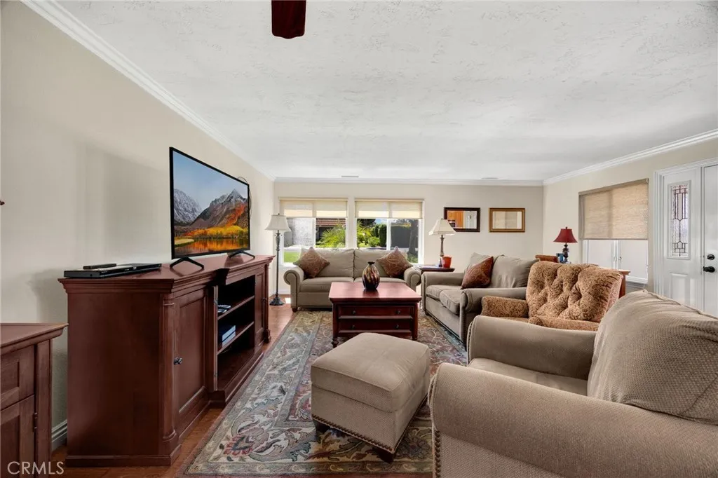 BEAUTIFUL, SINGLE STORY HOME in the highly desirable 55+ community of Laguna Woods Village. This 2-bedroom, 2-bath home offers convenient single-level living with no interior or exterior steps. This home features a bright and open floorplan with 2 bedrooms, 2 bathrooms with 1,100 square feet. You are welcomed at the entry into that large living room that includes crown molding, large windows for natural lighting and is attached to the dining room which is great for entertaining. The beautifully designed kitchen features beautiful cabinetry for storage, stainless steel appliances, electric range with overhead microwave, recessed lighting, and overlooks into the living room/dining room. The Primary bedroom suite features a large bedroom area and has direct access to the private patio, a beautiful ensuite bathroom that includes a double sink vanity and tub/shower combo. Second generously sized bedroom includes plenty of closet room and skylight. Large, private patio at the entry includes cover patio area and closet for storage. Additional features of the property include a carport and Inside laundry for stackable washer/dryer. Laguna Woods Village offers a 27-hole professional Gold Course, 7 Clubhouses, 5 pools, 3 fitness centers, Multiple sport courts including pickleball, bocce ball, and tennis, Performing Arts Center, Library, Equestrian Center, 2 garden centers and so much more! Close to shopping, entertainment, restaurants and has easy freeway access. This home is one you won’t want to miss!
