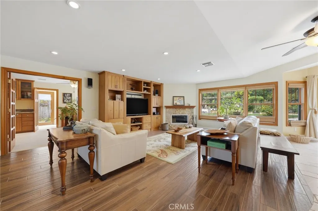 Welcome to this beautifully designed home in the highly sought-after La Costa area of Carlsbad, where comfort, functionality, and charm come together in a truly inviting setting. Ideally located on a quiet cul-de-sac, 5 miles from the beach and surrounded by scenic hiking trails, this home offers the perfect balance of outdoor lifestyle and everyday convenience. Backing directly to La Costa Heights Elementary, the location provides both privacy and a strong sense of community. Step inside to find a warm and thoughtfully crafted interior, featuring solid wood doors and double-hung wood windows throughout that fill the home with natural light while adding timeless character. A whole-house, two-stage water filtration system enhances everyday living. The custom floor plan offers both versatility and space, with three generously sized bedrooms upstairs and an additional bedroom downstairs—ideal for guests or multigenerational living. A standout feature is the expansive office, complete with its own private entrance through a custom Dutch door and accented by a beautiful stained glass side window, making it perfect for a home-based business, creative studio, or quiet retreat. Custom hardwood maple cabinetry is carried throughout the home, blending style with function. The kitchen is designed for both daily living and entertaining, featuring travertine flooring and a premium Dacor double convection oven and 36" cooktop. The spacious game room provides a perfect place to gather, complete with a wet bar and under-counter refrigerator for easy hosting. Step outside through the 9-foot tri-fold cantina door and into a backyard designed for both relaxation and entertaining. Enjoy the PebbleTec-finished pool, soothing Jacuzzi tub, and a large outdoor fireplace that creates a welcoming atmosphere year-round. The yard also includes three organic raised garden beds and ten fruit trees, adding a touch of sustainability and natural beauty to this already impressive space. With its unique architectural details, flexible layout, and prime location, this home presents a rare opportunity to experience the best of North County coastal living.