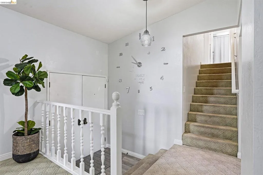 Set at the end of a court with added privacy and surrounded by lush, mature trees, this split-level home offers space, character, & endless possibilities. Featuring 4 bedrooms, 3 bathrooms, and 2,128 sq ft, the layout includes a convenient downstairs bedroom & full bath ideal for guests or multi-generational living. The inviting exterior showcases beautiful brick detailing, double front doors, a low-maintenance yard, & a charming sitting area perfect for morning coffee. Inside, large windows fill the home with natural light, complemented by plantation shutters. The kitchen features sleek stainless steel appliances, a stylish backsplash, & a window overlooking the expansive backyard. Enjoy cozy evenings by the brick wood-burning fireplace, while the spacious laundry room offers excellent storage & organization. One of the secondary bathrooms features a relaxing jetted tub. The primary suite is designed with everyday comfort in mind, featuring a built-in makeup vanity and custom closet organization that maximizes storage while maintaining a clean look. Step outside to a huge backyard designed for entertaining, complete with multiple sheds, an unfinished ADU, and a fun treehouse kids will love, fruit trees, RV parking & a prime location near freeway access, BART, shopping, dining.