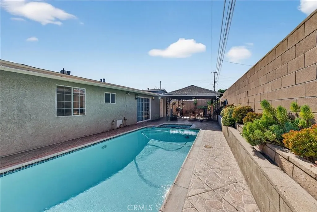 Beautiful pool home with gated front yard located in a quiet and established neighborhood of Ontario. This well-maintained property offers a functional and inviting layout with spacious living areas, abundant natural light, and tasteful updates throughout. The kitchen features clean white cabinetry, modern finishes, and generous counter space, making it ideal for both everyday living and entertaining. The living room is open and comfortable with high ceilings and warm flooring that create a welcoming atmosphere. Step outside to a private backyard featuring a sparkling in-ground pool and a covered patio area, perfect for relaxing, hosting gatherings, or enjoying Southern California’s year-round sunshine. The outdoor space offers a great balance of comfort and functionality. Additional highlights include a gated front yard, ample driveway parking, and a one-car attached garage. Conveniently located near schools, shopping centers, dining, and easy access to major freeways.