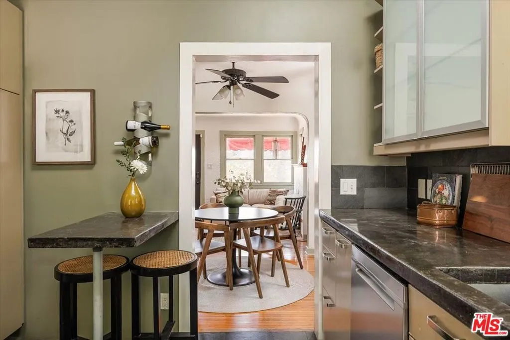 Tucked behind a private wooden gate in the hills of Echo Park, 2123 Branden welcomes you into an expansive compound where classic Spanish architecture meets a serene, resort-like garden retreat. Set on a generous 7,460 square foot lot, the property offers a rare sense of space and privacy in the heart of the neighborhood. A staircase leads to the main home, where original Spanish details set the tone; curved archways, a statement fireplace, and a warm, light-filled living and dining room reflect the home's timeless architecture. Two bedrooms and a hall bath anchor this charming front portion of the home. Beyond, a spacious kitchen opens to a fully permitted addition designed as a tranquil retreat. Soaring ceilings, skylights, and high windows fill the space with natural light, creating an airy atmosphere reminiscent of a Balinese estate. An additional family room and expansive primary suite both open through double French doors directly to the garden, blurring the line between indoors and out. The primary suite features a walk-in closet and a beautifully appointed en-suite bath finished in Venetian plaster with wood accents. Outdoors, the property becomes an enchanting oasis with multiple seating and dining areas woven throughout mature landscaping, lush succulents, and towering birds of paradise. A hot tub and lounge area invite relaxation, along with two outdoor dining spaces. Set within the garden is a charming one-room bungalow with a lofted sleeping area, ideal as a studio, office, or creative retreat. Nearby, the second dining area includes an outdoor kitchenette with sink and mini refrigerator, creating a secluded gathering spot surrounded by greenery. At street level, additional flexible space offers even more possibilities. With its own separate entrance, this one-bedroom unit includes a kitchen, bathroom, generous living and work area, and sleeping alcove. Spacious and versatile, it works beautifully as a guest suite, creative studio, workspace, or even a private music studio. Thoughtfully set apart from the main residence, it adds another layer of uses and possibilities to this unique compound. A detached storage garage and parking for up to four cars provide rare convenience. Private, versatile, and filled with character, this distinctive property offers a tranquil retreat in the heart of Echo Park.