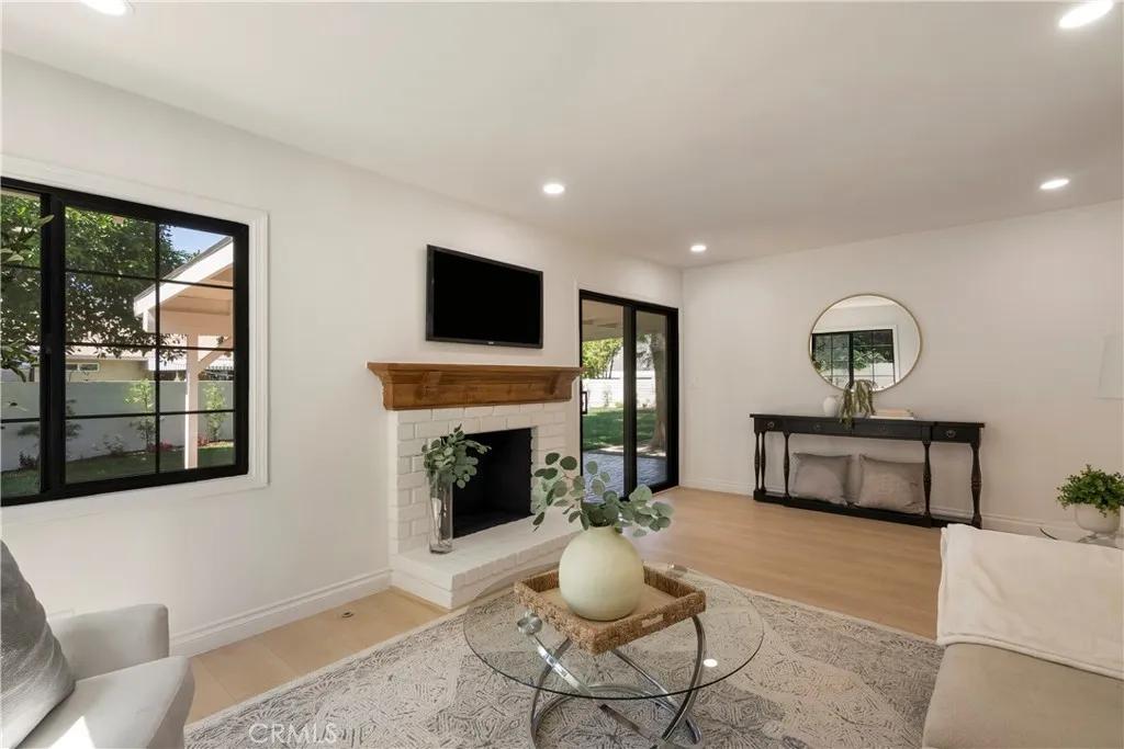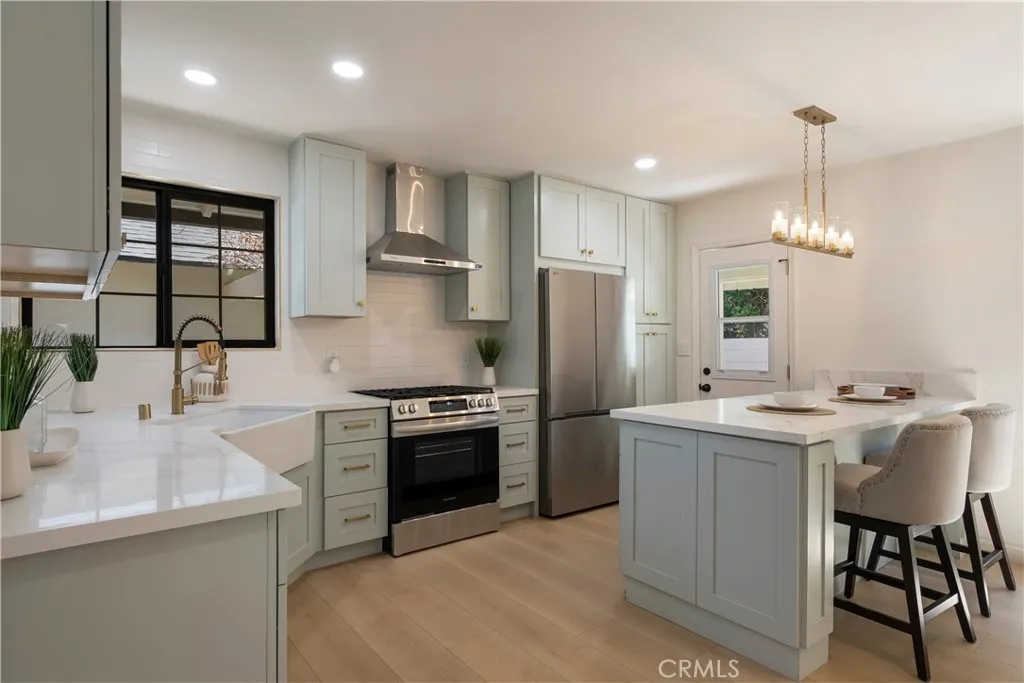 Welcome to a fully reimagined Woodland Hills retreat, where every detail has been thoughtfully curated. From the moment you arrive, the fresh exterior, new roof, and custom landscaping set the tone. Clean, intentional, and effortlessly inviting. The custom black grid windows frame the home with a modern edge, while the long, smooth driveway leads you into a space that immediately feels like your own. Step through the double-swing alder doors and into the open and luminous space. Wide plank LVP flooring, inspired by the French Riviera, flows seamlessly throughout, grounding the home in both style and comfort. The kitchen is the heart; finished in soft seabreeze tones, complete with a farmhouse sink, custom cabinetry, and brand-new stainless steel appliances. It’s the kind of space where mornings feel calm and evenings naturally gather. Every room tells a story of craftsmanship. Designer lighting, refined finishes, and intentional touches throughout. Bathrooms feel like private escapes, featuring a rainfall shower wrapped in custom tile and a second space adorned with warm white oak cabinetry and artisan clay textures. Select bedrooms open through double swing doors, creating a quiet connection between indoor comfort and outdoor living. And then, the backyard. Expansive, private, and framed by mature trees that filter golden California light, it’s a space that invites you to slow down. Whether it’s hosting under the covered patio, enjoying the open lawn, or simply sitting in the stillness, this is where life happens. All of this, perfectly located at the end of a quiet cul-de-sac, where the noise of the world fades and privacy takes its place, you’ll find this home doesn't just feel like another listing it feels more like a beginning. Just a short walk from The Village; offering dining, shopping, entertainment, and everyday convenience within reach, yet far enough to preserve the peace of home. This isn’t just renovated house. It’s a renewed home, with purpose, with style, and with the quiet promise that you’ve finally found the one.