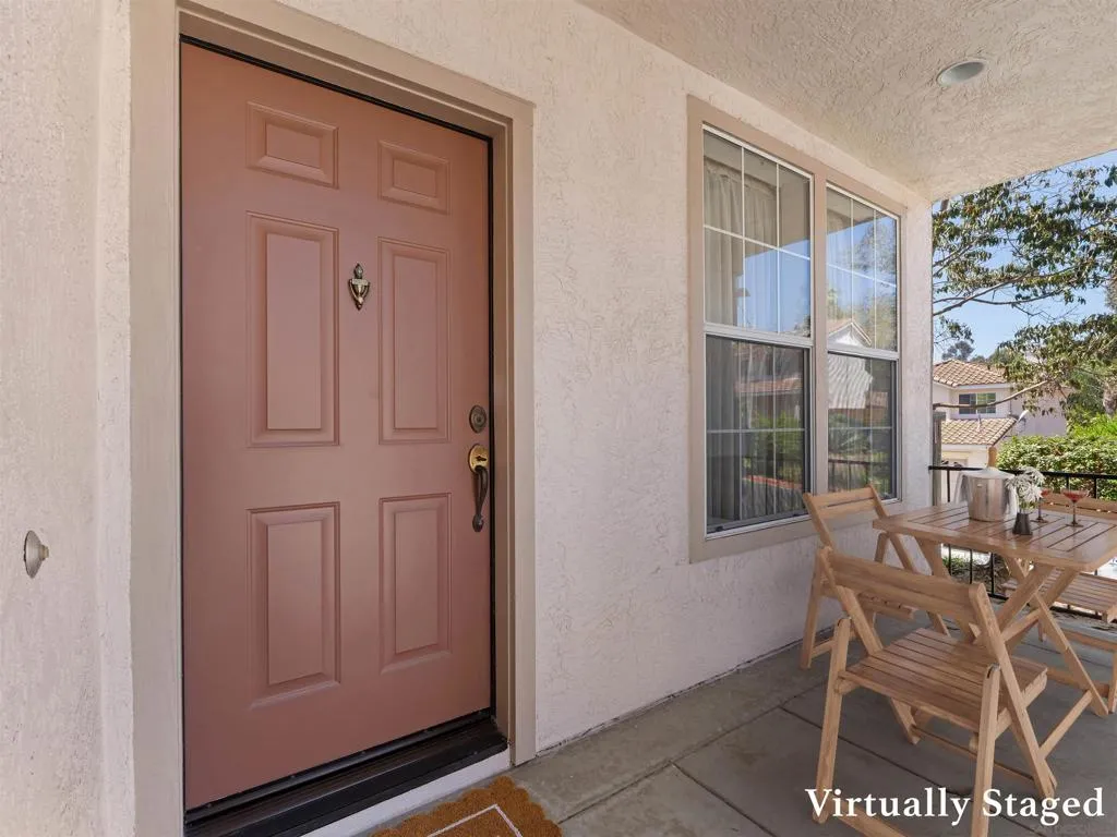 Positioned on a desirable corner lot in the California Showcase community, this 3-bedroom home offers a clean blend of thoughtful updates and elevated hillside living. The kitchen has been refreshed with newly painted cabinetry, stainless steel appliances, and a center island that opens naturally into the main living space—making it both functional and easy to live in day to day. Brand new neutral carpet runs throughout, giving the home a fresh, cohesive feel. Outside, the Tex-Cote exterior adds durability and efficiency, while Tesla solar (subscription approx. $65/month) helps keep energy costs low and predictable. Positioned to benefit from coastal airflow, the home stays noticeably cooler with less reliance on A/C. The backyard sits slightly elevated, offering added privacy and a more open feel compared to neighboring homes. Additional highlights include a spacious 2-car garage and low HOA (approx. $95/month), contributing to overall ease of ownership. Located within the highly regarded San Marcos school district, this home is well-positioned for both comfort and convenience—a move-in ready opportunity in one of the area’s most consistently sought-after neighborhoods. Brand new neutral carpet runs throughout, giving the home a fresh, cohesive feel. Outside, the Tex-Cote exterior adds durability and efficiency, while Tesla solar (subscription approx. $65/month) helps keep energy costs low and predictable. Positioned to benefit from coastal airflow, the home stays noticeably cooler with less reliance on A/C.