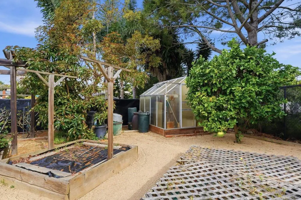 Highly desirable Point Loma pocket: single-level home on a large, flat lot perfect for a pool, ADU or expanded outdoor living. Bright, airy interior with great cross-breezes, original hardwood floors, new carpet and a freshened interior, plantation shutters throughout, and upgraded vinyl windows. Private, spacious backyard with built-in BBQ/burner/sink, raised garden beds and established fruit trees. French doors off the kitchen open to a deck for morning coffee and seamless indoor/outdoor living. 2-car garage plus a spacious 2-car driveway, artisan studio/shop, abundant storage (garage, under deck, under house and attic), and quiet, sought-after neighborhood. Centrally located between Point Loma, Ocean Beach and Liberty Station with easy airport access — not under the flight path. Ideal for entertaining, gardening, or expansion.