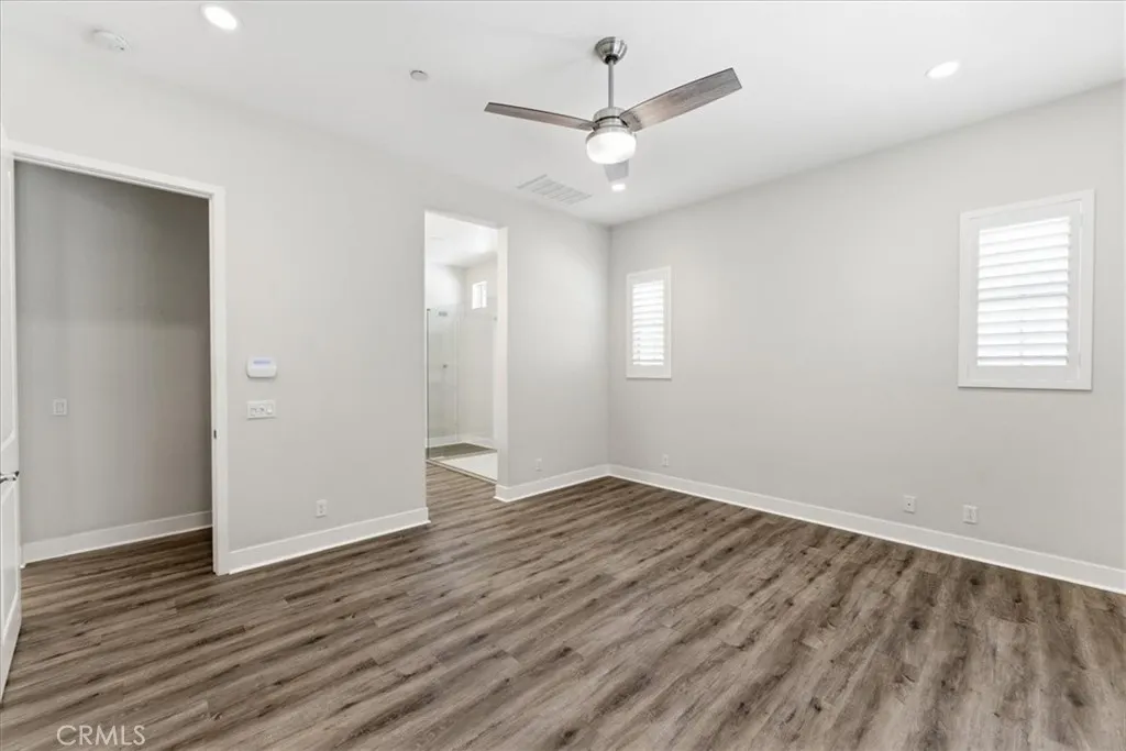 Welcome to Ovation at Flora Park, where resort-style living meets modern comfort in this beautifully upgraded single-story home. Offering 3 bedrooms and 2.5 bathrooms, this desirable single story floorplan provides both functionality and flexibility for everyday living. The open-concept layout is enhanced by luxury vinyl plank flooring, plantation shutters, and abundant natural light. The kitchen serves as the heart of the home, featuring quartz countertops, a spacious eat-at island, ample cabinetry, and a walk-in pantry—ideal for both daily living and entertaining. The living and dining areas flow seamlessly and extend to an enclosed outdoor patio, creating a private space perfect for relaxing or hosting year-round. The primary suite offers a peaceful retreat with a spa-inspired bathroom and generous closet space, while two additional bedrooms provide versatility for guests, a home office, or hobbies. Additional features include a full laundry room with built-in cabinetry, direct-access two-car garage, and a custom outdoor irrigation system, along with quality upgrades throughout. Residents enjoy access to Flora Park’s resort-style amenities, including a pool, spa, fitness center, pickleball courts, and clubhouse—all within a vibrant 55+ community. A wonderful opportunity to own in one of Cypress’s most sought-after neighborhoods.