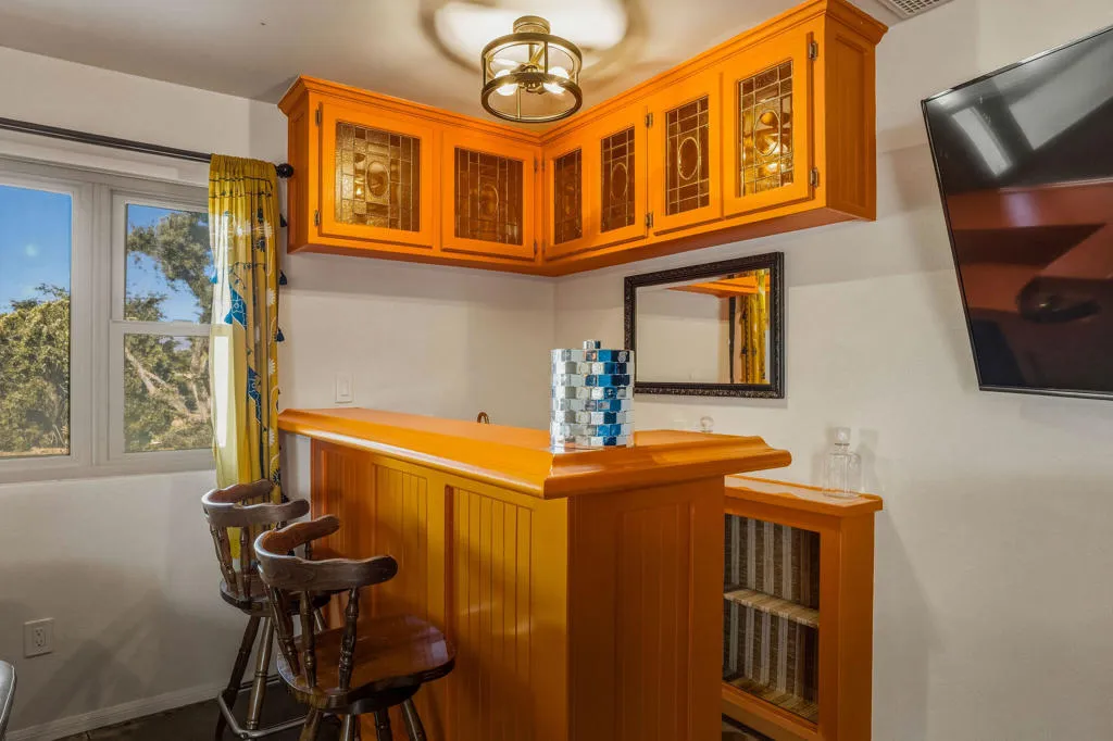 Step into a one-of-a-kind retro retreat where distinctive design meets modern comfort. The expansive corner lot--nearly half an acre--offers a circular driveway, full privacy, and generous outdoor space, creating a setting perfect for relaxed living and effortless entertaining. An in-ground pool paired with two spas invites year-round enjoyment, while the covered patio with outdoor kitchen and pavilion sets the stage for memorable evenings under the stars.Inside, three fireplaces warm the kitchen, living, and family rooms, adding character and ambiance throughout. A wet bar enhances hosting, while the detached two-car garage, currently styled as a game room, provides flexible space for recreation or hobbies.The primary suite delivers a private escape with a Roman tub framed by a window box and an enclosed patio featuring its own in-ground spa--offering a spa-like experience at home. A 36-panel solar system with Tesla PowerWalls brings energy efficiency and peace of mind.Designed for versatility, this property suits a primary residence, vacation getaway, or income-producing opportunity, blending lifestyle, comfort, and long-term value. Priced to sell, this unique home will go quickly. Schedule your private showing today!