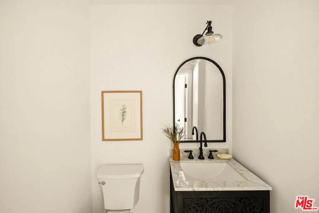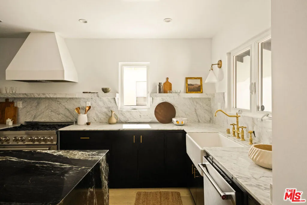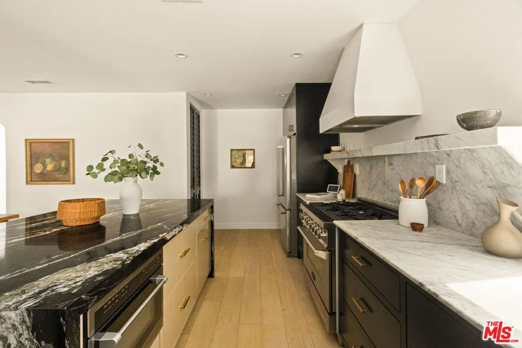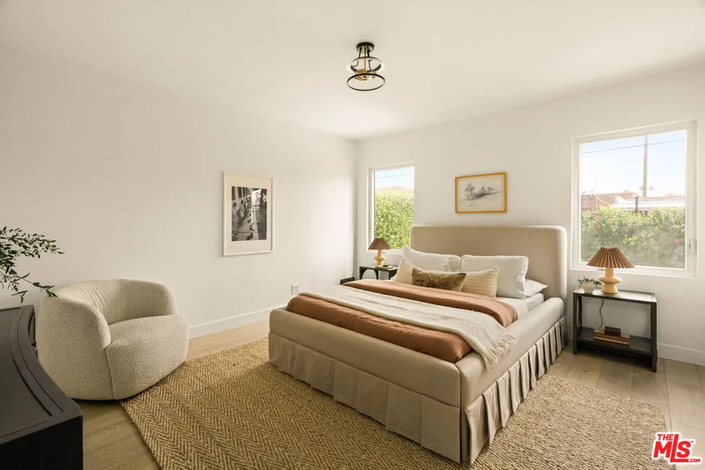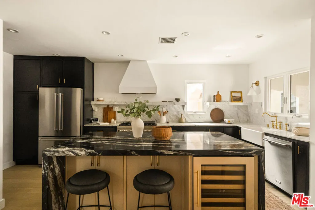 Welcome to Casa Bella, a designer renovated Spanish style home with the perfect combination of preserved character details and modern allure in prime Leimert Park. A wide palm tree lined street guides you home to a charming courtyard, covered patio with warm saltillo tiles and a porte-cochere framed with ornate art deco arches. Artisanal details throughout remain as remnants of more intentional times, such as an original fireplace dressed in Arto brick tile, and archways providing seamless transitions between space. The living room provides ample space to spread out into, with an oversized picture window allowing sunlight to billow in highlighting bright European wide plank white oak engineered hardwood flooring. An adjacent powder room in the foyer offers a convenient bath for guests. The bespoke kitchen is the perfect gathering spot with an oversized island with waterfall countertops, built-in seating and a wine fridge. Custom built cabinetry offers plenty of storage space topped with marble counters and complemented by a pantry closet with uniquely ornamental doors. Perfectly positioned for the sunset to wash the living space in golden hour sunrays, enjoy evenings here winding down from long work days. Three spacious bedrooms complete the space, each offering a comfortable retreat. The primary bedroom features an en suite bath and double doors leading to the private yard space. Mature hedging provides a verdant backdrop for days spent basking in scents of fresh florals in your garden. The finished two car garage begs to become overflow space for a home office or gym or private parking with its automatic garage door. Move in without worry with upgraded plumbing, electrical, including a 200-amp panel, tankless water heater and central HVAC system. Convenient accessibility to LAX and close to the 10-Freeway, Expo Line and K Line for finding your way around the city. Enjoy great coffee nearby at Ora Cafe and Harun, top tier restaurants such as Jon & Vinny's, Dulans, and Somerville, and many art galleries in adjacent Leimert Park Village and West Adams. Welcome home!