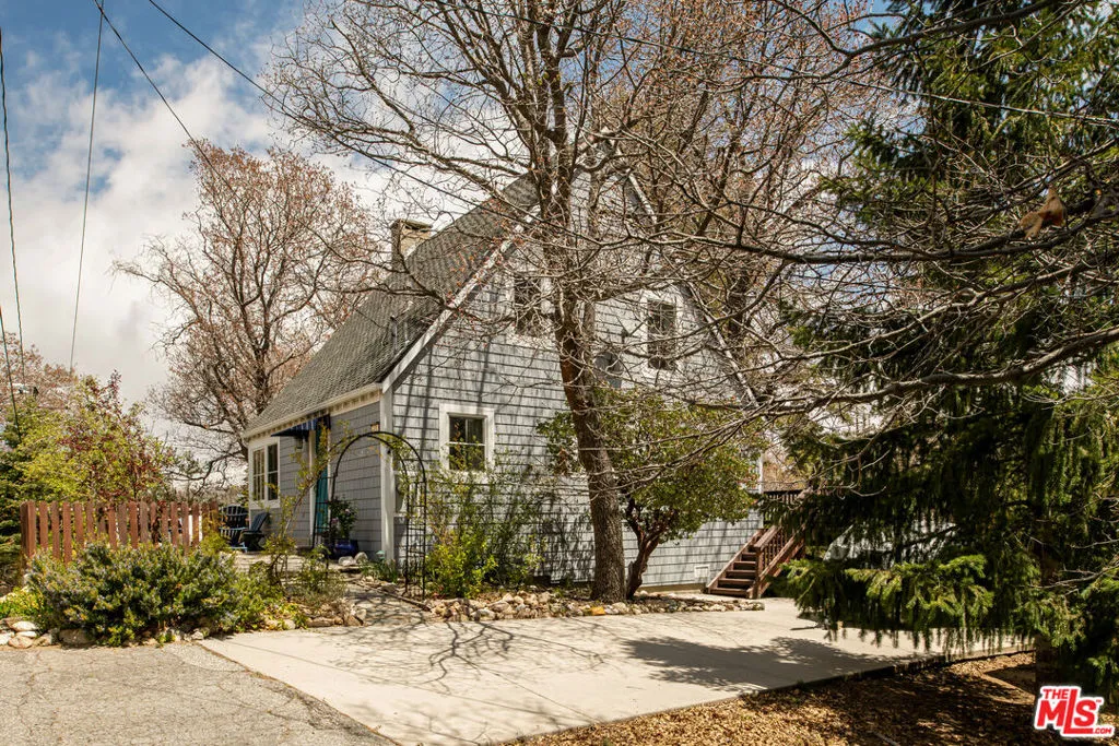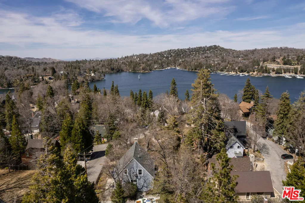 A design-forward cabin with a rare adjacent parcel (totaling 8,000+ sq ft) perfectly positioned at the crest of Lake Arrowhead's coveted Palisades neighborhood. Originally built in 1949, this thoughtfully preserved retreat blends timeless character with modern comfort, set among towering oak and pine trees and enveloped by lush, curated gardens that feel both private and inviting. Inside, the main living space is warm and light-filled, with exposed beams and walls of Anderson wood windows that bring the outdoors in. Restored Douglas fir floors and rich combed mahogany paneling create a sense of heritage and craftsmanship, while slate finishes in the kitchen and baths add a grounded, contemporary edge. The open yet intimate layout flows effortlessly, offering both airy gathering spaces and cozy corners to unwind.The dining room is a stand out, stylish and welcoming, with custom handcrafted cabinetry and direct access to an oversized elevated deck. Surrounded by mature greenery, it's an ideal setting for everything from quiet morning coffee to sunset dinners under the trees, no matter the season. The front garden, dotted with roses, apple trees, and layered landscaping, offers yet another enchanting space to relax or entertain.The vintage-inspired kitchen has been tastefully updated with modern conveniences, maintaining its charm while meeting today's lifestyle needs. A bath and additional storage complete the main level. Upstairs, three character-rich bedrooms feature soft, dappled light and filtered lake views, creating peaceful retreats. A second bath blends vintage style with modern updates, and an enclosed laundry adds everyday ease. Just a short stroll leads you to scenic trails and the calm, deep waters of Palisades Point, one of the area's most serene lakeside settings. This property also includes coveted lake rights, granting access to the full Lake Arrowhead Lake experience, boating, swimming, fishing, and exclusive shoreline enjoyment reserved for owners. With the added adjacent parcel, there's rare potential for expansion, whether envisioning a guest house, garage, or creating a more expansive living space. This is a unique opportunity to own a piece of Lake Arrowhead history while enjoying the best of modern mountain living, with room to grow and make it your own. Central A/C, upgraded systems and ample flat parking complete this one of a kind offering. Additional adjacent parcels and a luxury 1/2 double dock with dock house on Palisades Pt. is available for additional price. Lake Rights are included!