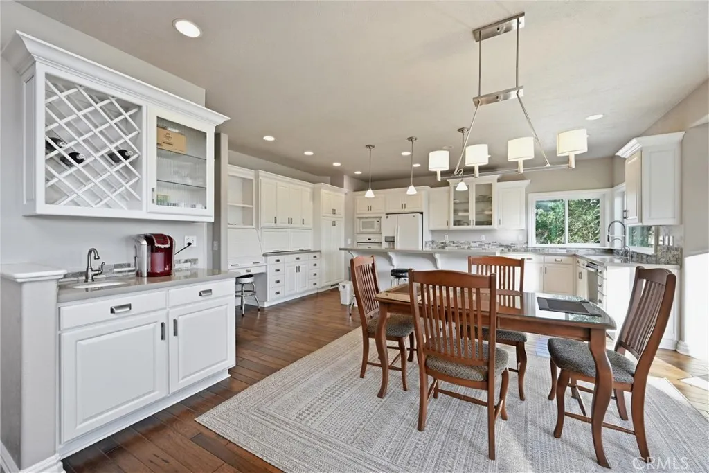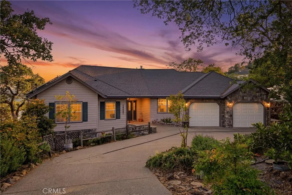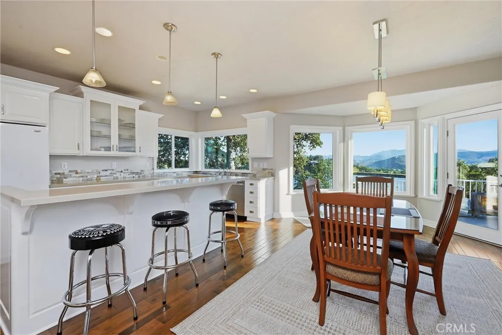 LAKEFRONT! Set along 170 feet of prime shoreline in Hidden Valley Lake, this beautifully updated 3 bedroom, 3 bathroom, 2,557 SF custom home offers a seamless blend of comfort, craftsmanship, and breathtaking views of Hidden Valley Lake with Mount St. Helena just beyond. Step through the inviting foyer, where natural light pours in through a dramatic wall of windows, immediately drawing your eye to the water. The main living space feels bright and open, designed to capture the views from nearly every angle. The gourmet kitchen is a true showpiece, featuring handcrafted cabinetry, quartz countertops, a Viking stovetop range, matching appliances, recessed lighting, and two spacious pantries—perfect for both everyday living and entertaining. Just off the kitchen, the dining room offers a stylish wet bar with wine storage, creating an ideal setting for hosting. The primary suite is a private retreat, accessed through elegant French doors and highlighted by crown molding, a tray ceiling, custom built-ins, a cozy gas fireplace, and direct access to the deck. The en-suite bath offers a spa-like experience with tile countertops, a brick backsplash, and a Jacuzzi tub positioned to take in peaceful lake views. Downstairs, the versatile lower-level bonus room includes its own bathroom, wet bar, and private entrance—perfect for guests, extended stays, or potential in-law accommodations. Additional features include a spacious two-car garage with a recirculating hot water system with bonus room, owned solar for energy efficiency, and an expanded driveway providing ample additional parking. Outdoor living is just as impressive, with expansive TimberTech-style decking ideal for relaxing or entertaining while enjoying sunsets over the spillway. A gently winding path leads you to your plumbed boathouse and private dock—ready for kayaking, boating, and lakeside living at its finest.