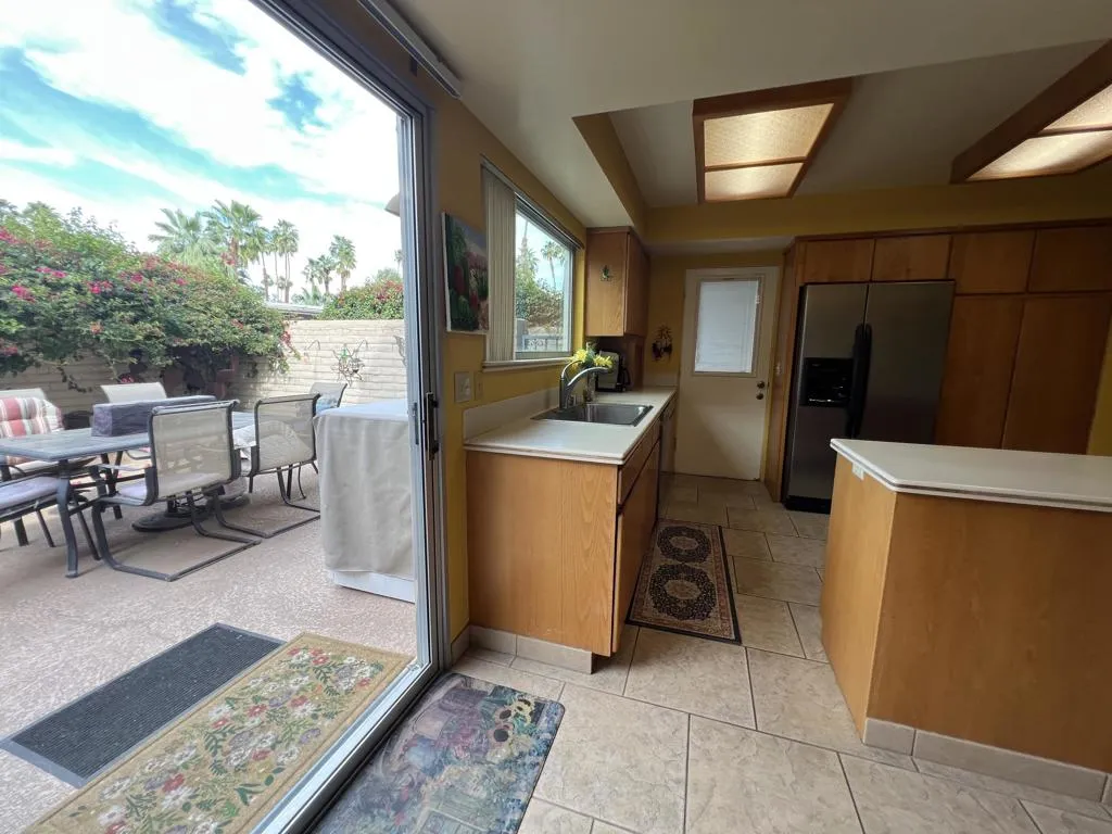 Welcome to Desert Braemar, a hidden gem in Rancho Mirage offering a unique blend of Mid-Century vibe and resort-like living in a private, gated 55+ cooperative community. Unit 23 is a spacious and sought-after downstairs unit with front patio- spectacular mountain views, offering approximately 1,378 square feet with 2 bedrooms and 2 bathrooms. The open floor plan creates a comfortable flow, while two patios--one front mountain views and one expansive and private in the back--extend the living space outdoors.This home is offered furnished and features a bright kitchen with generous Corian counters, stainless appliances, and a casual bar-top opening to the living area. A washer and dryer is included, along with a newer 2019 HVAC for added comfort and efficiency. This is an exceptional opportunity to enjoy relaxed, amenity-rich desert living in a truly special community.Built in 1958 and set on 12.25 lushly landscaped acres, the grounds are designed for peaceful walks and easy living. HOA dues provide exceptional value, covering property taxes, water, and Spectrum cable and internet.(plus grounds, exteriors, amenities, and more) This is more than a home--it's a lifestyle. Desert Braemar is known for its strong sense of community, with a lively seasonal schedule of social events and activities. Residents enjoy access to a wide range of amenities, including pool and spa, gym, pickleball and tennis courts, putting green, lawn bowling, and a dog park. Plus, the Garden Room with full kitchen and bar is the hub of connection and entertainment.Walkable to Willie's and The Palm Cafe, shops, cafes, eateries, walking and hiking trails too! Don't snooze on this one...