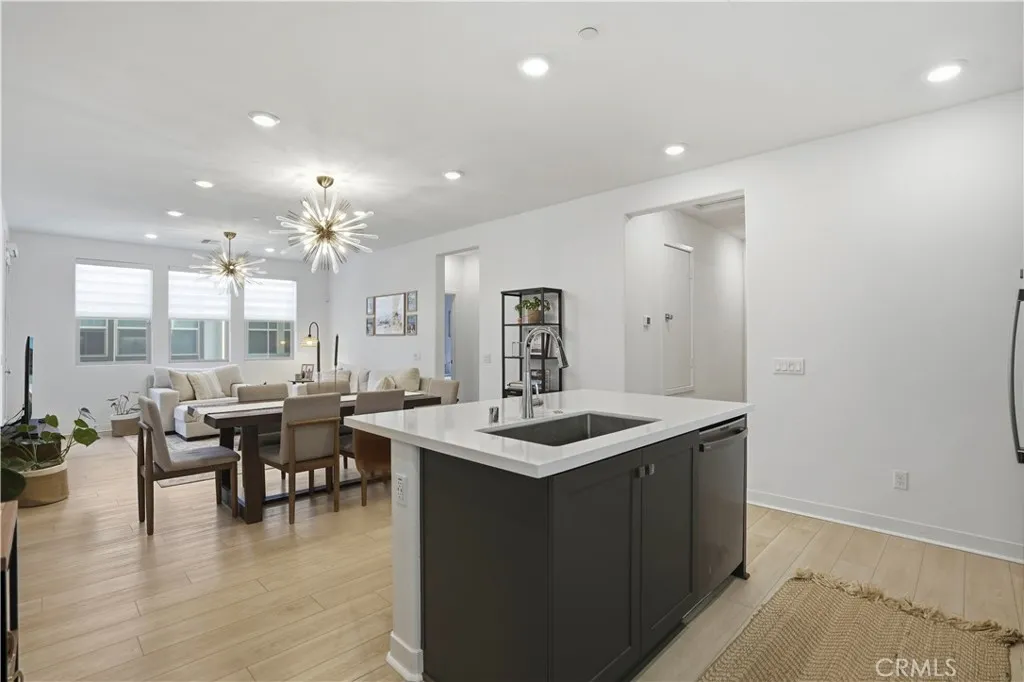 This beautifully designed top-floor Portico residence offers single-level living with 2 bedrooms, 2 full baths, and a generous den that can serve as a home office, or 3rd bedroom. The open-floorplan seamlessly connects the Great Room, kitchen, and dining areas, extending to a private balcony perfect for relaxing outdoors. The beautiful kitchen features a large island with quartz countertops, stainless steel appliances, soft-close cabinetry, and a gas range. Custom designer lighting highlights the spaces with gorgeous gold and glass chandeliers in the living room, beautiful glass teardrop pendants gracefully hung over the primary countertop, and oversized chandelier over the primary bedroom. The spacious primary suite, is located on one side of the home with the second bedroom on the opposite side, and the den in the front hallway creating privacy for all. The primary suite boasts a walk-in tiled shower, quartz countertops with dual sinks, and walk-in closet. Spacious secondary bedroom is light and bright and the perfect room for guests, children or a roommate plus having the separate den means you don't have to compromise a bedroom for an office. Beautiful LVP flooring, custom window coverings, tankless water heater, full sized washer and dryer plus Solar system completes this wonderful home. The garage is conveniently located next to the stairs and provides parking and ample storage. Located in the Award Winning Rancho Mission Viejo, Residents enjoy access to world class amenities in all 3 Rancho Mission Viejo villages including Ranch Camp with the 20,000 sq ft Lagoon Pool, firepits, lap pool, fitness center walkable from the property. Plus enjoy walkable access to the Boulder pond with walking path, playground and the Rienda k-8 School slated to open in Fall 2027. Welcome Home!