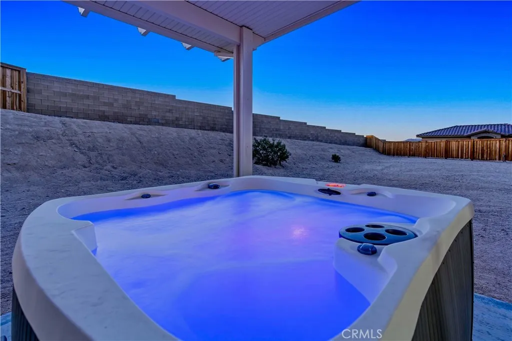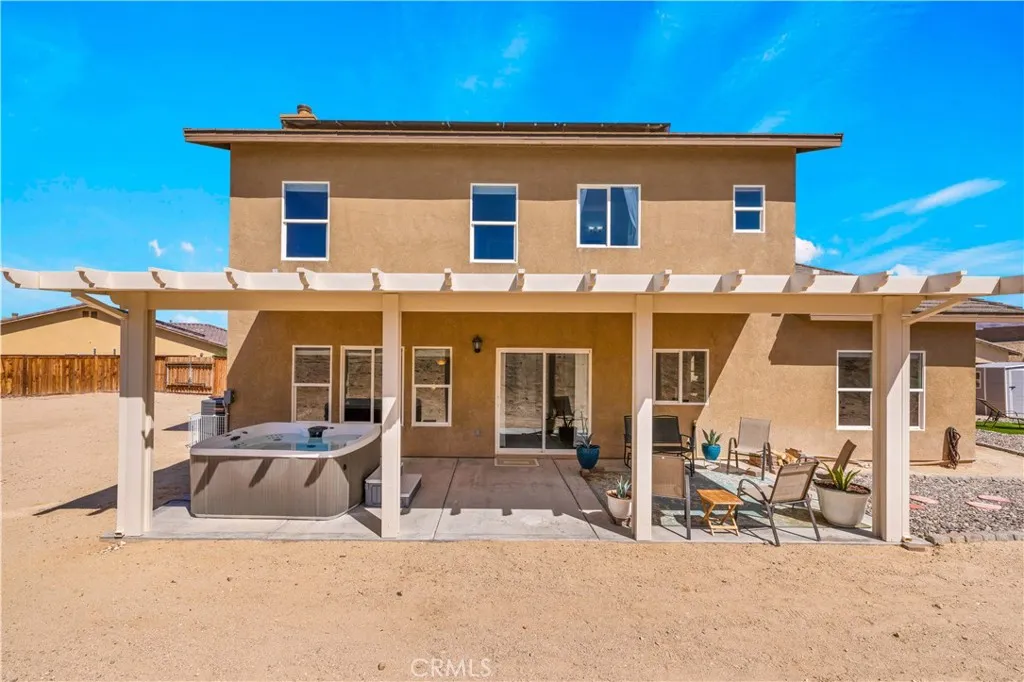 Prepare to Fall in Love! What could be better than a gorgeous, spacious home on the largest lot in the neighborhood? How about FULLY PAID SOLAR—with the seller willing to pay it off at closing with an acceptable offer! As you turn onto Cactus Wren Court, one home immediately stands out. Positioned at the end of a peaceful cul-de-sac, this impressive property sits on a sprawling 0.71-acre lot with a sweeping yard designed for beauty and easy maintenance. The front landscaping features attractive colored rock for water conservation, while blooming roses add a charming touch. Step inside to a dramatic soaring two-story entry, creating a grand first impression for you and your guests. The front living room and adjacent dining area are spacious and filled with natural light from large view windows. The kitchen is thoughtfully designed with beautiful cabinetry, granite countertops, and ample workspace—perfect for gourmet cooking or everyday meals. The oversized island is ideal for breakfast, gatherings, or entertaining. The kitchen opens seamlessly to a separate family room, where a cozy natural gas fireplace creates a warm and inviting atmosphere. Step outside to your private desert retreat. The covered patio features a hot tub for relaxing under the stars. A pathway leads to an above-ground pool and pergola, offering shaded space to unwind and escape the desert heat. This expansive 2,827 sq ft home offers exceptional versatility, including a main-floor bedroom and bathroom with a walk-in shower, ideal for guests or multi-generational living. A separate office with double-door entry provides a perfect work-from-home setup. Upstairs, the grand primary suite is a true sanctuary, complete with a huge walk-in closet, dual sinks with generous counter space, a soaking tub, walk-in shower, and private water closet. Two additional guest bedrooms share a spacious hall bathroom with double sinks and ample storage. A large laundry room with built-in cabinetry is conveniently located upstairs. Additional highlights include a 3-car garage, reverse osmosis water filtration system, and a gas line on the back patio for your dream BBQ setup. For those working at the Naval Hospital at the Marine Base in 29 Palms, this home is within the on-call distance for the hospital! This home truly offers both comfort and convenience in every detail. This is more than a home—it’s a dream worth living! Come experience it for yourself! Schedule a viewing with an Agent today!