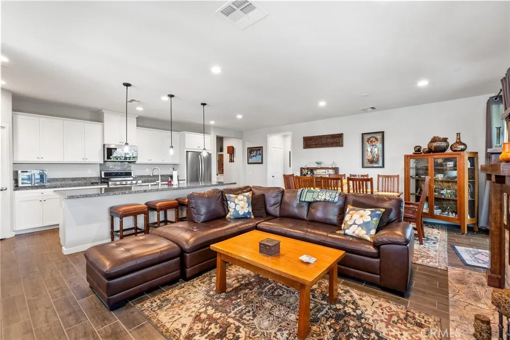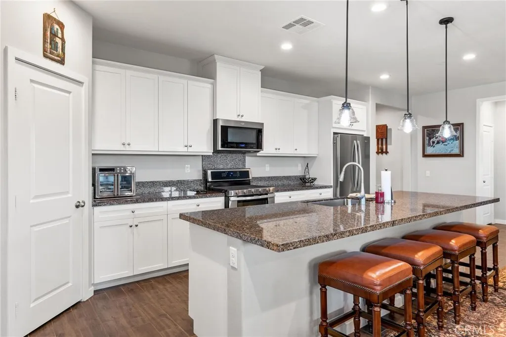 Welcome to 34515 Velvetleaf St. in the highly desirable community of Heritage Ranch of Winchester—offering nearly 2,100 sq. ft. of beautifully upgraded living space on an almost 8,000 sq. ft. lot with RV parking! This spacious 4-bedroom, 3-bath home (with one bedroom currently configured as a stylish bonus room) showcases a highly functional and open-concept floor plan perfect for both everyday living and entertaining. The stunning kitchen features gorgeous white cabinetry, granite countertops, stainless steel appliances, and seamlessly opens to the expansive living room and dining area—creating a bright and inviting great room feel. Throughout the home, you’ll find numerous upgrades including custom interior paint, wood-tile flooring, carpeting, and modern light fixtures—all reflecting true pride of ownership. The refrigerator, washer, and dryer are all included in the sale, adding convenience and value. Step outside to a beautifully designed backyard complete with stamped concrete, an alumiwood patio cover, above-ground spa, lush landscaping, and sprinkler system—perfect for relaxing or hosting. The backyard also includes a storage shed that will remain with the property. The RV parking is a standout feature, equipped with a 30-amp electrical hookup and its own dump station—ideal for RV owners or those needing extra flexibility. The garage is equally well-appointed with overhead storage racks that are included, maximizing functionality and organization. Additionally, the home features a fully paid solar system, offering energy efficiency and long-term savings, along with a low HOA of only $32 per month. With its combination of upgrades, space, RV amenities, and exceptional outdoor living, this home is truly move-in ready and a rare find! Make sure to scroll down and click on the video tour and virtual tour!