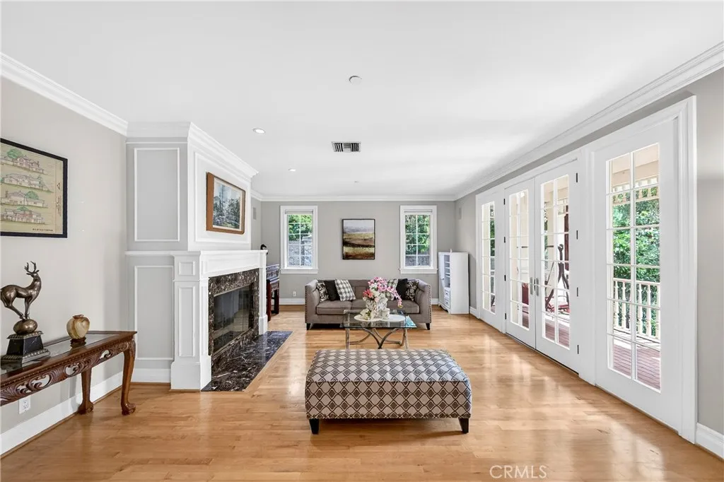 Opportunities of this caliber are increasingly rare in Sierra Madre. Set along one of the city’s most picturesque, tree-lined streets, this distinguished Victorian Farmhouse—part of the coveted “Jameson Legacies” collection—offers a level of craftsmanship, scale, and privacy that would be exceptionally difficult to replicate today. A lush, storybook front garden and sweeping wrap-around porch create an immediate sense of arrival and retreat—where established mature landscaping, a gracious façade, and a serene setting establish the tone before you even step inside. The curb appeal is simply unmatched. The thoughtfully designed floor plan flows effortlessly between formal and informal spaces. 9-foot ceilings, custom-milled moldings, wainscoting, handcrafted fireplace mantels, and gleaming hardwood floors set an elevated standard throughout. The gourmet kitchen is a chef’s dream: Viking stove, double ovens, warming drawer, convection oven, Sub-Zero refrigerator, Bosch dishwasher, wine chiller, and a generous walk-in pantry. Solid wood interior doors with Baldwin hardware and Casablanca ceiling fans complete the picture. The expansive primary suite is a true sanctuary—featuring a fireplace, sitting area, balcony access, and a spa-inspired bath. A classic laundry chute connects directly to the lower-level laundry room below. A private in-home elevator provides seamless, effortless access between all levels. Plus Outside, the grounds unfold as a true garden estate. Sixteen mature fruit trees of various varieties create a lush, ever-changing urban orchard that invites both relaxation and harvest throughout the seasons. Additional highlights include leased solar panels, a whole-house water softener, a brand-new upstairs A/C system (2025), dual HVAC, two laundry rooms, central vacuum system, Pella windows, and a desirable north-facing orientation that delivers balanced natural light throughout the day. With its generous proportions, legacy-caliber architecture, and an assemblage of features rarely found under one roof, this is a compelling alternative to new construction — offering land, maturity, privacy, and craftsmanship that simply cannot be replicated at today’s building costs. Located just moments from Sierra Madre’s beloved Old Town, local cafés, and the scenic foothill trails of the San Gabriel Mountains, this is more than a home — it is a truly rare and enduring legacy property in one of the San Gabriel Valley’s most sought-after communities.